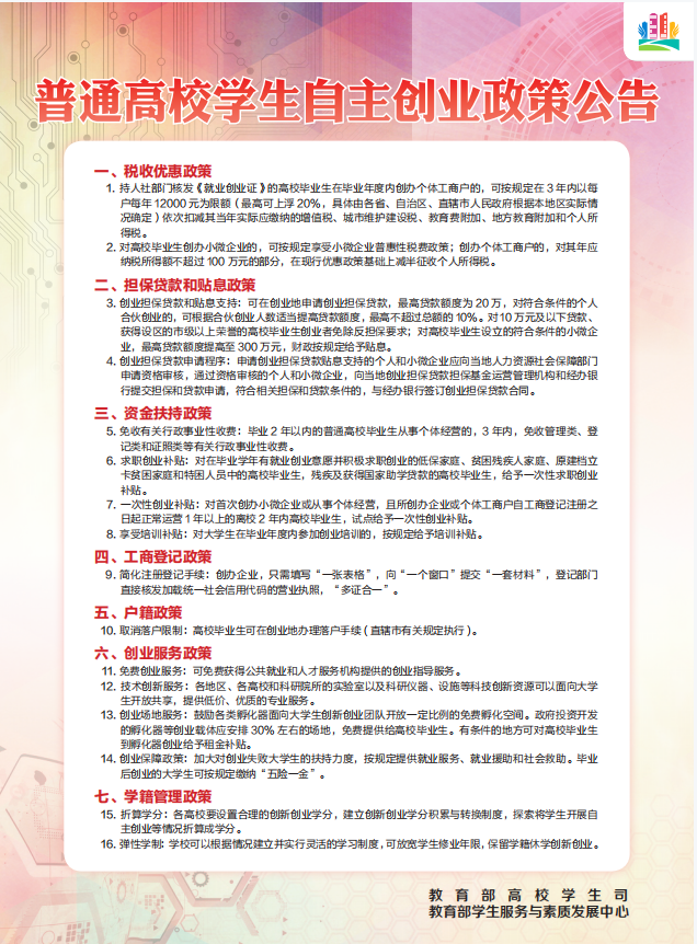 普通高校学生自主创业政策公告