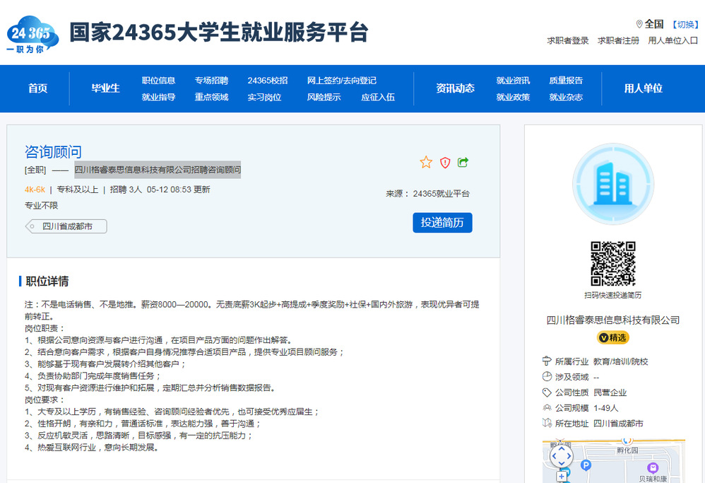 【招聘】四川格睿泰思信息科技有限公司招聘咨询顾问