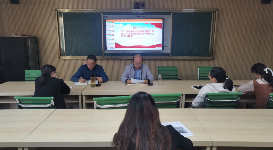 与会人员均结合工作实际,谈认识,亮态度。学院党总支书记瞿信柏要求,全院党员干部都要加强对二十大报告的学习,要学深悟透,准确把握报告的精神实质、丰富内涵和实践要求;要不断抓好理论学习和成果转化;要不忘初心、敢于担当,不断推进学院院风学风进一步良性发展。