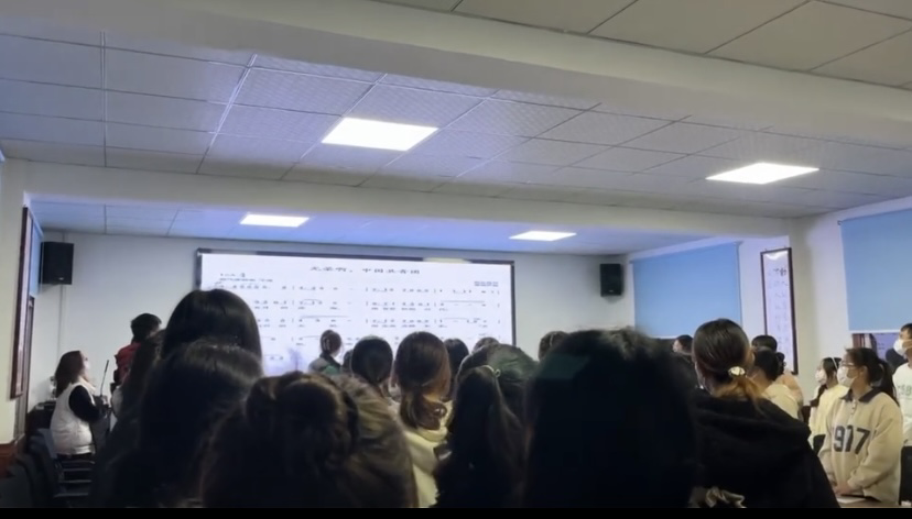 开班仪式上,首先,全体起立奏唱团歌,伴随着雄伟激昂的共青团团歌缓缓响起,参会的全体团干以严肃端庄的姿态,铿锵有力的声音在为更好地建设教育管理学院团总支做出宣誓!