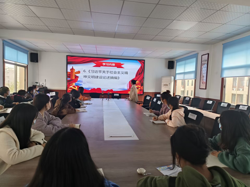 (供稿人:何青 邹静)为了学习贯彻党的二十大精神,着力凝聚奋进新征程的强大力量以及让学生党员自觉肩负起新时代精神文明建设工作的使命,11月25日上午,鄂州职业大学教育管理学院国家学生样板支部开展了“学习党的二十大精神暨《习近平关于社会主义精神文明建设论述摘编》分享会”主题党日活动。