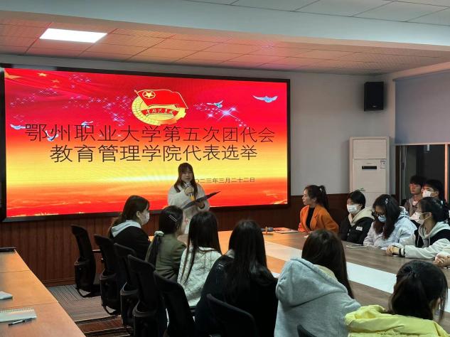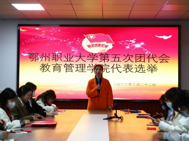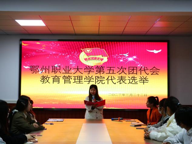 (供稿人:何青  王英鉴)为推动我院共青团工作再上新台阶,增强广大团员青年的荣誉感和责任感,明确在新形势下我校共青团工作的任务和思路,提高团组织的凝聚力和战斗力。教育管理学院于322日晚在2号楼315会议室举行了鄂州职业大学第五次团代会教育管理学院代表选举,学院团总支书记何青、学院各专业班级的40名学生团代表参加了会议。范诗语同学主持了会议。