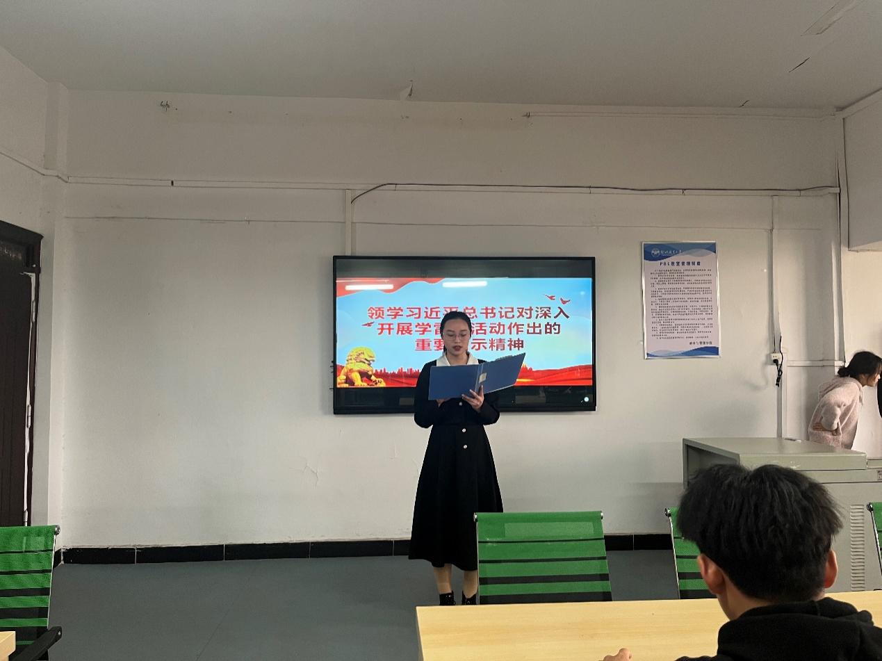 紧接着21级小教3班王鑫同志领学习习近平总书记在学习贯彻党的二十大精神研讨班开班式、中央党校建校90周年庆祝大会暨2023年春季学期典礼上的重要讲话精神。他表示“习近平总书记的重要讲话回顾总结了中央党校90年历史成就和光辉业绩,围绕坚守为党育才、为党献策的党校初心作了全面深刻阐述,科学回答了做好党校工作的一系列重大问题,通篇贯穿马克思主义立场、观点、方法,是对党校办学治校规律的科学把握,为新时代党校事业发展指明了前进方向、提供了根本遵循,是指引新时代党校事业发展的纲领性文献。”