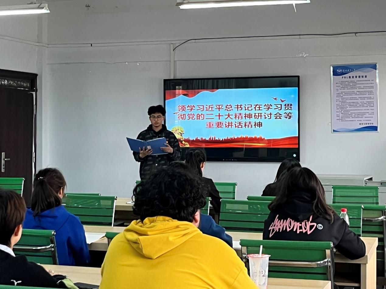 【通讯员 柯希茜 陈苑瑜为深入学习贯彻党的二十大精神,确保各项重点工作有效落实。330中午12,鄂州职业大学教育管理学院学生一支部于二号楼306教室举办3月主题党日活动,采取线上线下相结合的方式,全体学生一支部在校党员及流动党员参加会议。