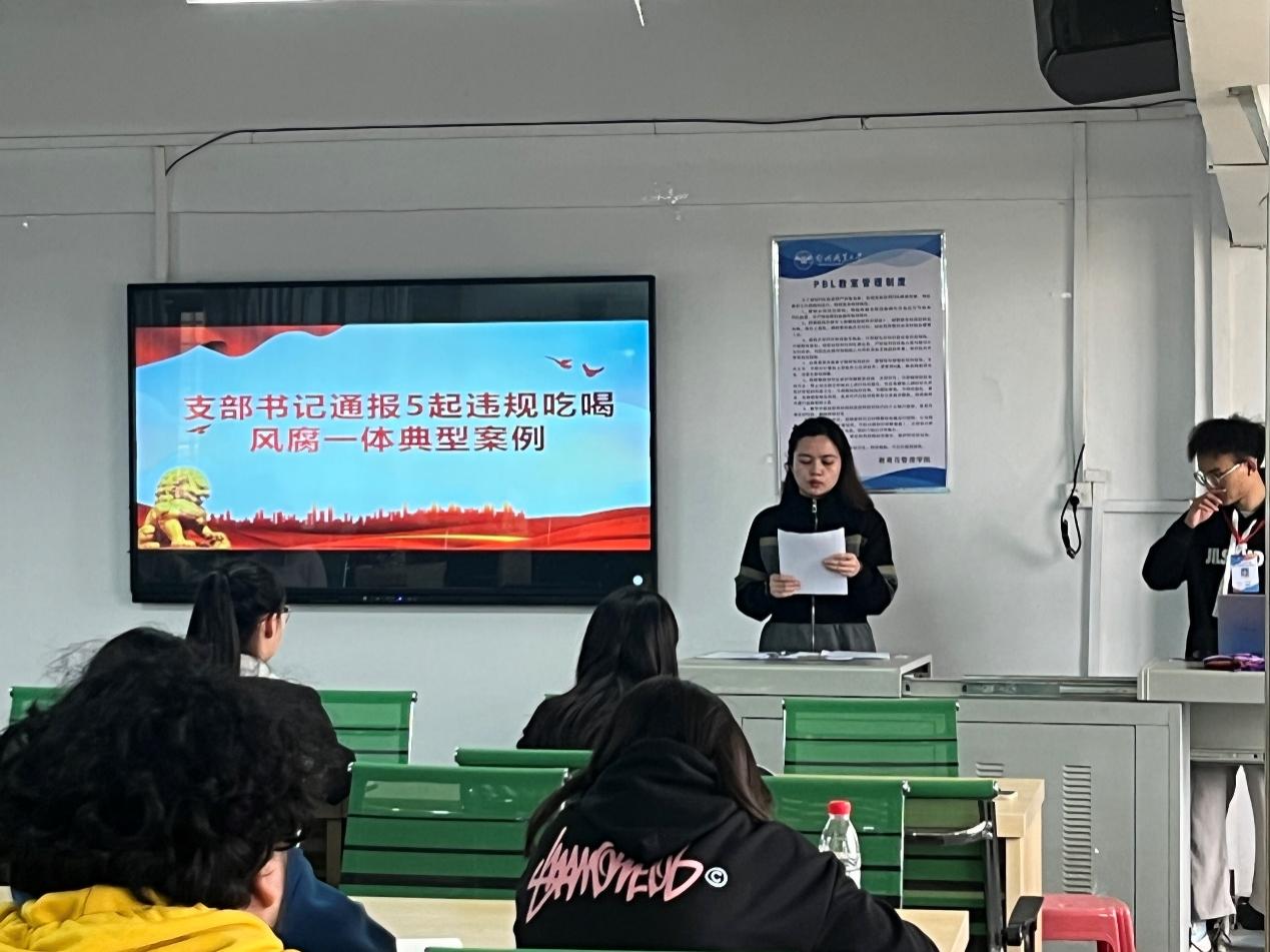 活动最后,由支部书记柯希茜同志通报5起违规吃喝风腐一体典型案例。