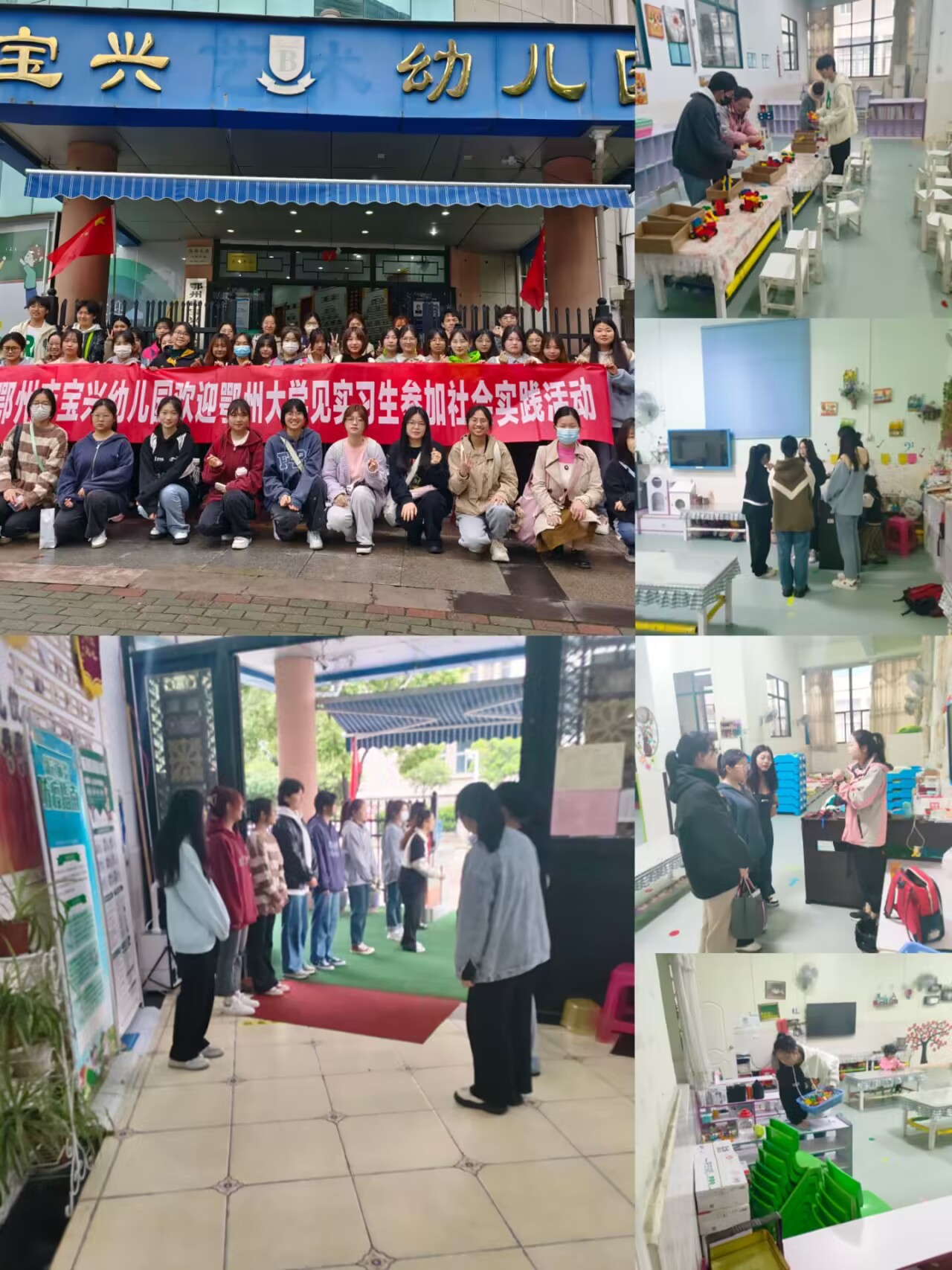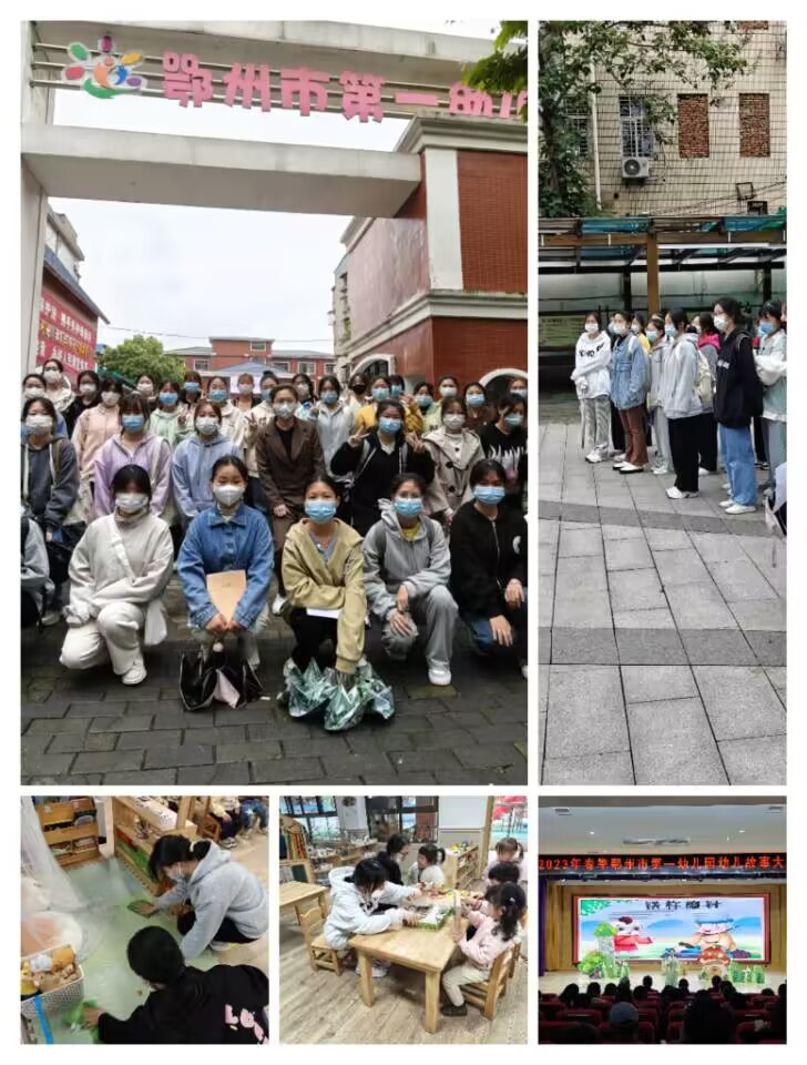 (供稿:黄丽)教育见习是学前教育专业人才培养工作的重要组成部分,也是师范教育贯彻理论与实践相结合原则的体现。按照学前教育教研室的组织安排,2021、2022级学前教育专业学生于4-5月先后赴鄂州市第一幼儿园、市第二幼儿园、市实验幼儿园、宝兴幼儿园进行教育见习。