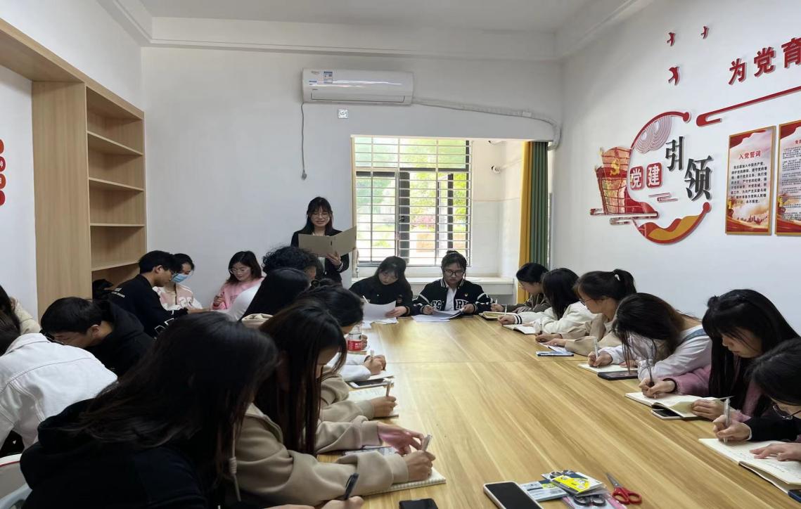 【通讯员 柯希茜 陈苑瑜】为了深入贯彻落实党的二十大精神,提高学生党员的政治思想意识,强化党性修养,增强学生党员的政治责任感和历史使命感,汲取前进力量。4月27日中午12时,教育管理学院学生一支部在我校“一站式”学生社区“梦想红仓”党团活动室开展“学思想,强党性,重实践,建新功”主题活动,全体学生一支部在校党员参加活动。