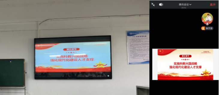 宣讲过程中,柯希茜同志结合中国近现代史,列举了广为人知的经典事例,让党员们深刻认识到科技是第一生产力。党的二十大报告对教育、科技、人才统筹部署、统一论述,把科教兴国、人才强国、创新驱动发展“三大战略”摆在一起,强调三者之间的有机联系、协同配合、系统集成,为提升国家创新体系整体效能指明了方向和路径。柯希茜同志特别强调“党建引领”这个关键词,作为学生党员,需要当好榜样,起示范作用。
