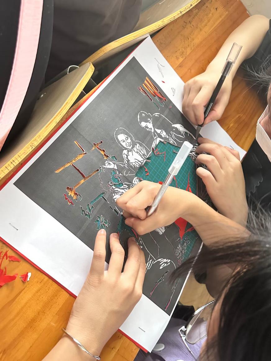 随后,殷可可同学示范剪了一些小花等图案,普通的剪刀和彩纸在她手中左右翻转,栩栩如生的形象跃然眼前。同学们看着惊呼连连,按捺不住跃跃欲试的表情。