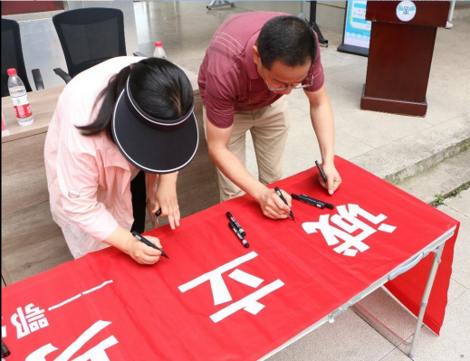 教管学院党总支书记瞿信柏随即宣布活动正式启动,到场领导、辅导员老师以及各学生代表纷纷在横幅上进行诚信签名,合影留念,标志着启动仪式圆满结束。