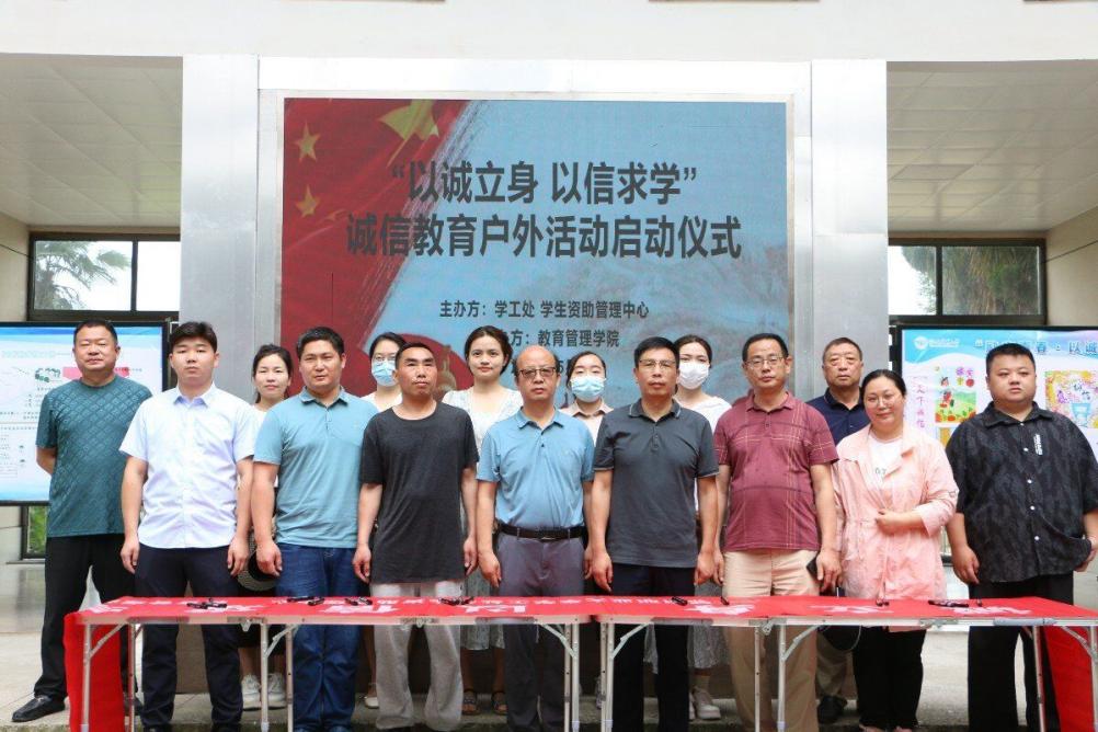 (供稿 姜新准、黄家璇、莫海鹏)荣成于学寓教于信为深入贯彻落实党的二十大精神,夯实“三全育人”视域下高校学生资助育人工作体系建设,使广大学子将诚信精神“内化于心、外化于行”531日上午,学工处学生资助管理中心主办、教育管理学院承办以诚立身以信求学”诚信教育启动仪式于二号教学楼中庭举行学工处处长陈永红、副处长刘真喜出席本次活动,教管学院院长陈适、党总支书记瞿信柏、副书记吕婷及各院部相关辅导员与学生代表参与了此次活动。