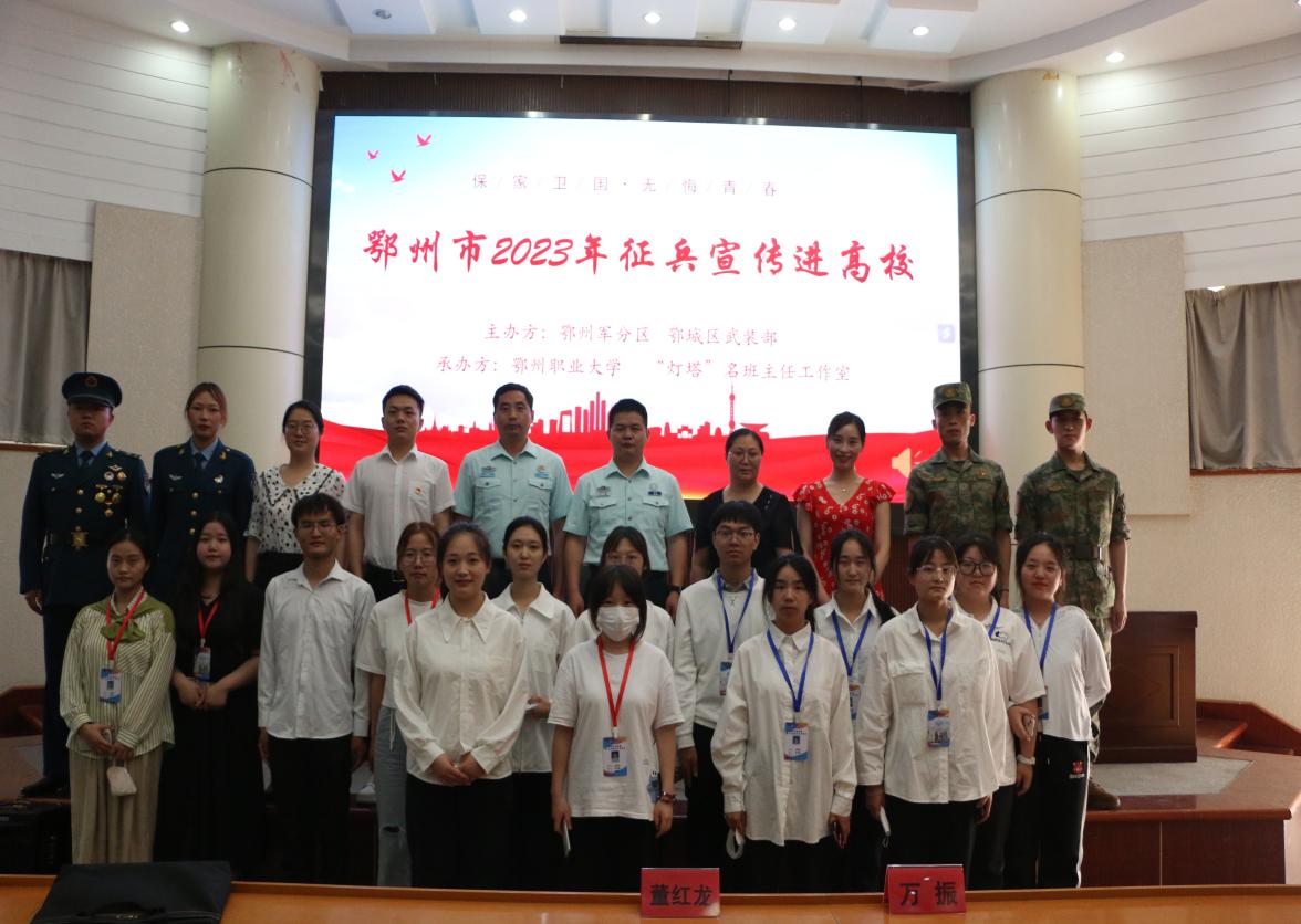 61日下午,由鄂州军分区、鄂城区武装部主办,学工部教育管理学院、“灯塔”名班主任工作室联合承办的鄂州市2023年征兵宣传进高校活动图书馆学术报告厅举办鄂州军分区动员处科长万振鄂城区武装部动员科科长董红龙鄂州职业大学武装部工作人员,各院部副书记,团总支书以及专职辅导员和各院部的学生代表参加了此次活动