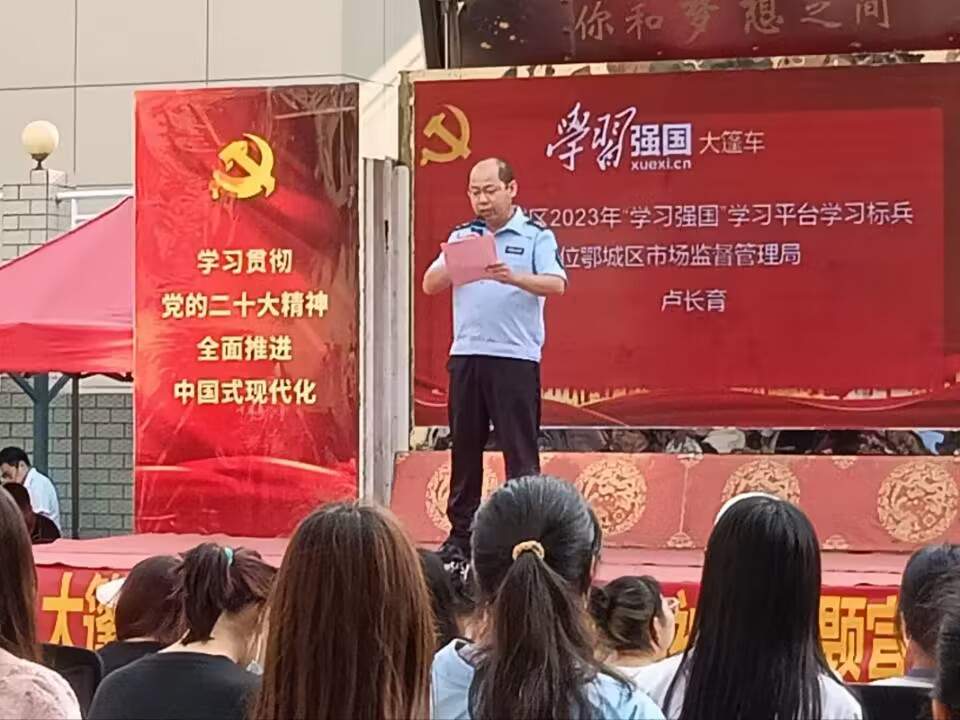 按照“学习强国”学习平台立足全体党员、面向全社会的目标定位,进一步加强“学习强国”学习平台在高校师生的推广,现场还安排了“学习强国”电视机顶盒功能讲解。紧接着,鄂城区2023年“学习强国”平台学习标兵、鄂城区市场监督管理局卢长育同志分享他的学习心得体会“让学习成为习惯,把学习融入生活”。他强调,做事情必须保持滴水石穿,锲而不舍的钻劲;始终保持学用结合,因事为制的巧劲;始终保持比学赶超,履职尽责的拼劲。通过结合自己的工作,深入浅出,声情并茂地讲述了自己与“学习强国”学习平台结下的不解情缘。同学们纷纷表示,以后一定把“学习强国”平台当作无言的导师,做到常学常新,入脑入心,把学习作为一种追求、一种爱好、一张健康的生活方式,并将学习热情传递至身边的人,努力做到学思用贯通、知信行统一。
