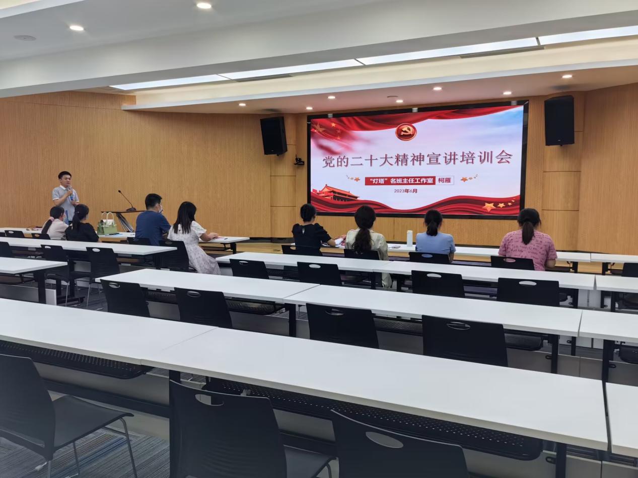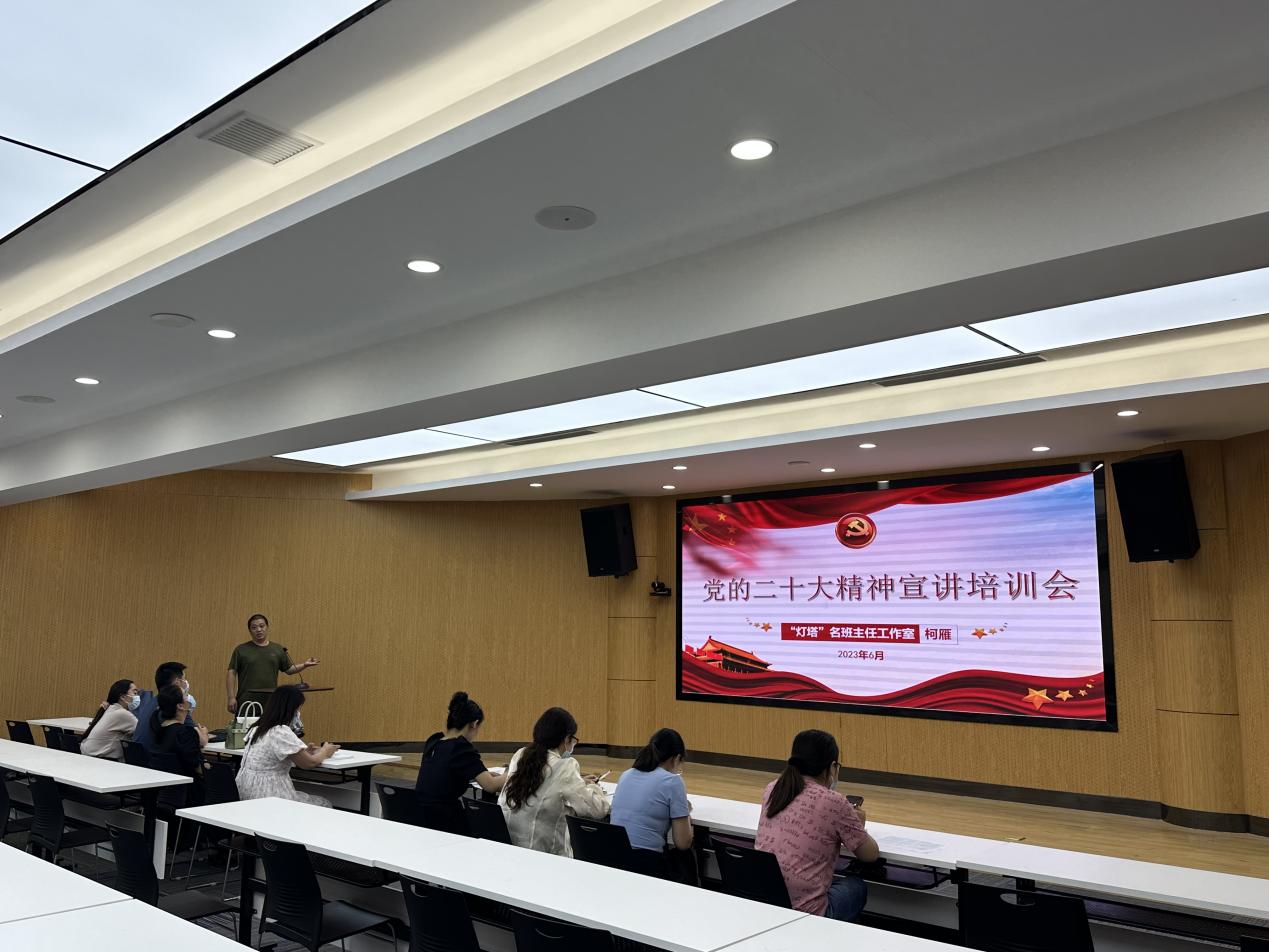 (供稿人:袁骏驰)613我校学工部联合“灯塔”名班主任工作室在图书馆一楼二号报告厅举行辅导员宣讲团成立大会暨学习宣传贯彻党的二十大精神辅导员宣讲团专题培训,鄂州市委宣讲团成员、马克思主义学院讲师柯雁给到场辅导员进行了专场培训会议灯塔名班主任工作室成员袁骏驰老师主持,学工处副处长潘世超、各学院辅导员宣讲团成员参加了本次会议。