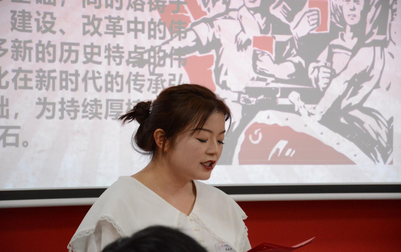 最后,宣讲员张海雯的宣讲主题为《让初心薪火相传,把使命永担在肩》,她围绕“红色革命”这一中心展开宣讲,从红色革命的历史背景、红色革命的内涵、红色革命文化对党的发展对坚定文化自信、引领人民群众的意义等方面展开宣讲。一个个红色故事、一段段光辉历史,印证了坚持真理、坚守理想,践行初心、担当使命,不怕牺牲、英勇斗争,对党忠诚、不负人民的伟大建党精神。