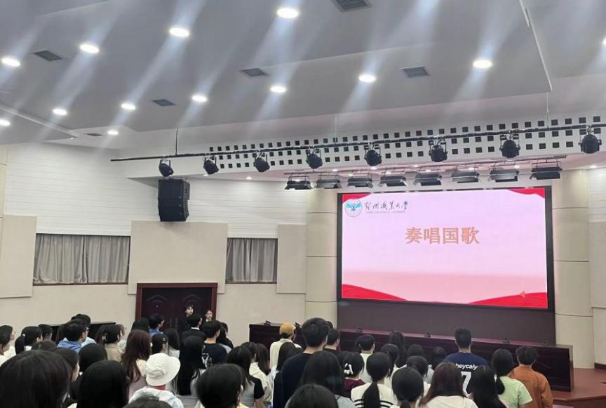 大会伊始,全体起立,奏唱国歌。主持人介绍此次出席活动的领导、老师以及教管管理学院各班班级代表。