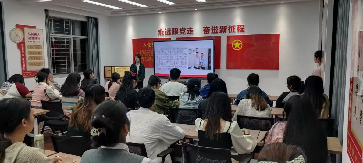 随后刘艳兰同学分享了我院优秀青年学生的事例,引导同学们将书本知识同社会实践相结合,在学习和工作中做到做到学而思、思而践、践而悟,脚踏实地,在国家发展实践中展现青春作为。