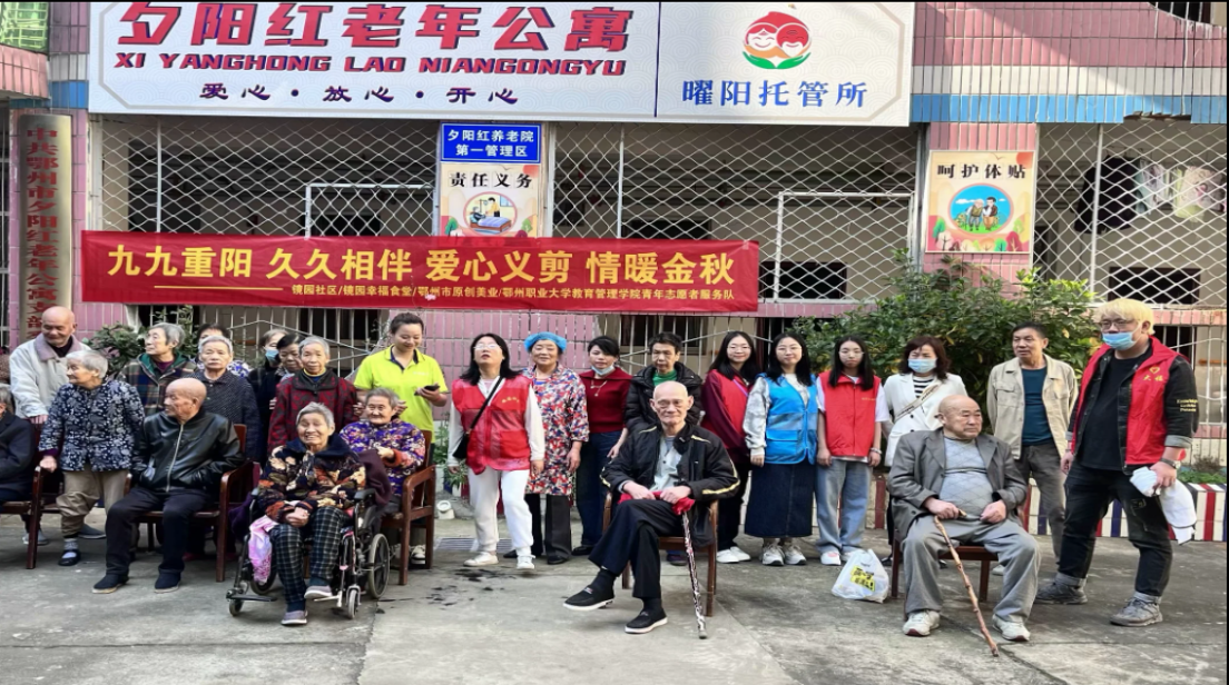(供稿:何青,陈怡含,李合毅)爱系于发,情系于剪。正值九九重阳节,浓浓敬老情。为继承和发扬无私奉献,关爱老人的传统美德”切实满足社区老人的生活需要,1023日上午鄂州职业大学教育管理学院苏柳英志愿服务队党员志愿服务队前往镜园社区开展“金秋送暖,爱心以剪”志愿服务活动。