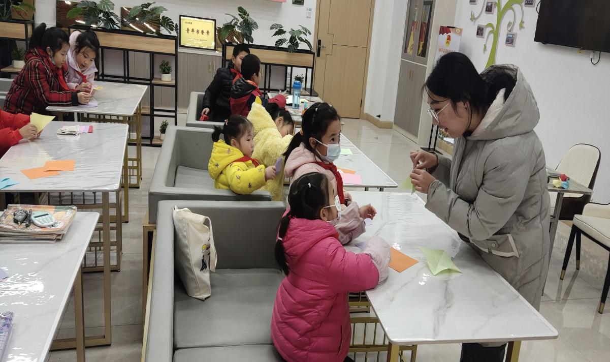 下午,志愿者们开展兴趣培养课。趣味折纸课上,志愿者辛云娜先询问小朋友们“哪些人值得感谢”、“如何感谢”两个问题,引发孩子们思考的同时引入课程。在课堂上,志愿者传授学生们折纸的详细步骤,用简单明了的语言和生动的示范让孩子们轻松理解并掌握基本的折纸技巧。同时,志愿者还鼓励大家互相帮助,发挥自己的创造力,在折纸中表达自己的想法和故事,一起制作出多姿多彩的作品。