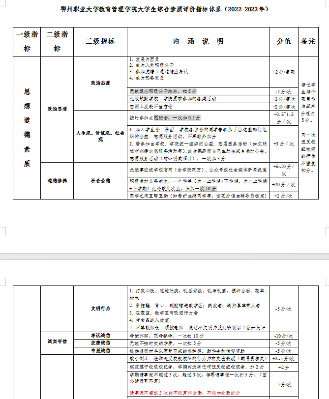 (教育管理学院大学生综合量化评价体系建立程序图及部分内容展示