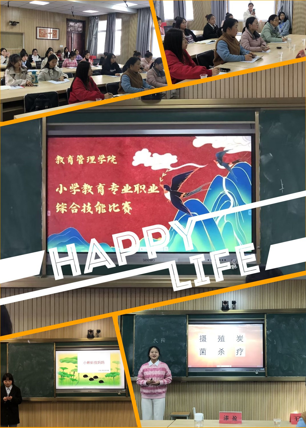 (供稿人:刘清华)为发挥校园文化育人功能,全面推进“三全”育人,提高师范生的教师综合素质能力,培养学生对“新课标”的探索创新能力,为学生提供展示才华的舞台。教育管理学院小学教育专业于11月16日下午在二号教学楼s401教室举行课程思政系列主题活动之职业综合技能比赛决赛。本次活动有幸邀请到严巧云老师,漆盈老师,王晓辉老师,龚婷婷老师作为评委嘉宾出席。