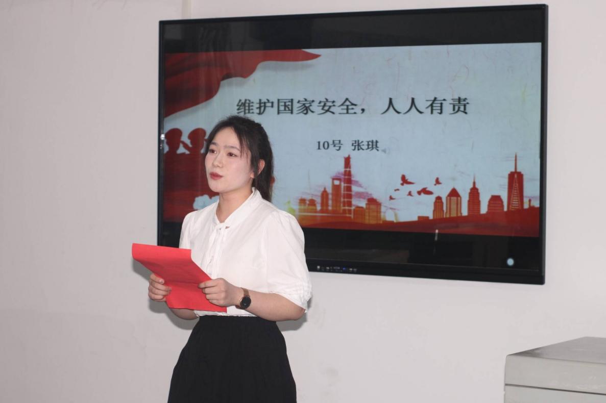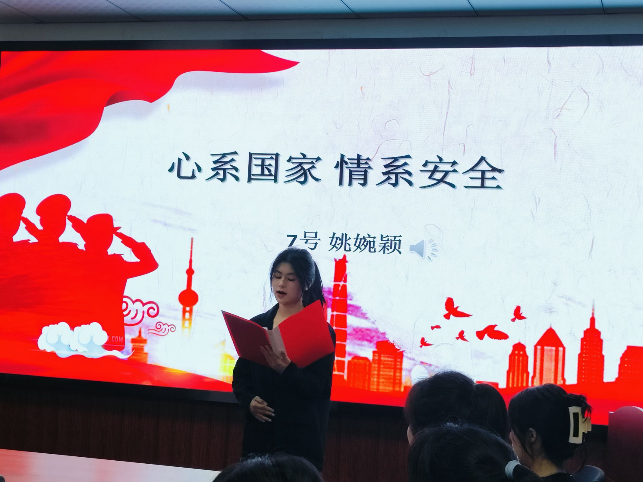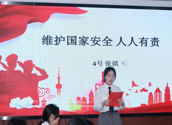 424日晚七点,选手们精神饱满地齐聚一堂,为现场观众带来了一场视听盛宴。选手们紧紧围绕国家安全这一主题通过慷慨激昂的演讲、深情款款的朗诵以及幽默风趣的小品,多样化推动国家安全教育入脑入心,担当好时代新人的使命。最终张琪同学的演讲作品《维护国家安全,人人有责》获得一等奖荣誉。