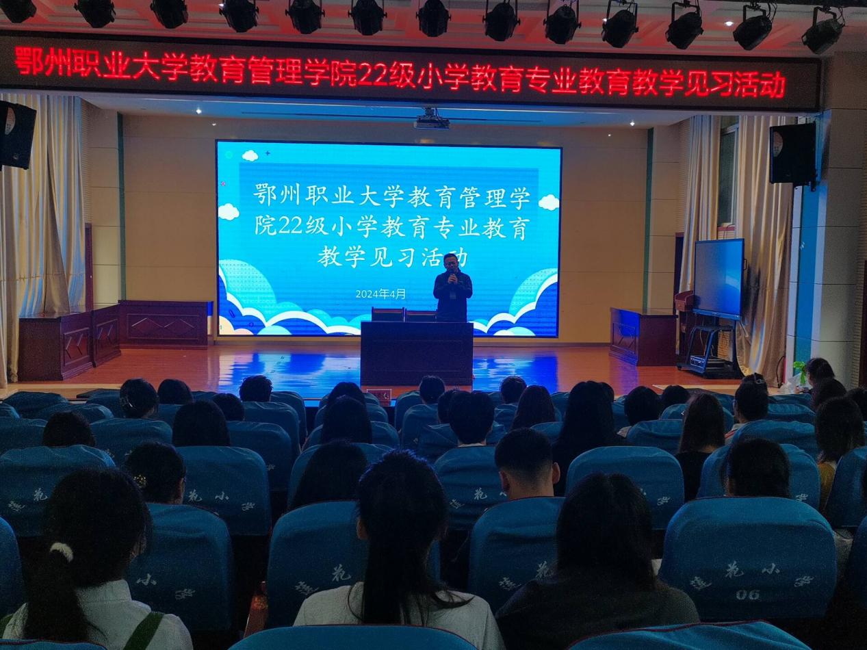 (供稿:付紫薇)教育见习是学校实践教学的重要组成部分,也是提升师范类学生专业素养的重要手段。20244-6鄂州职业大学教育管理学院小学教育专业2022师范生怀揣着投身于教育事业的梦想,将分期分批踏上期待已久的见习之旅。在我院二十多位指导教师的带领下,第一批见习学生已于415日按分组要求纷纷进入了鄂州市实验小学、鄂州市武昌学校、鄂州市明堂小学、鄂州市吴都小学、鄂州市南塔小学、鄂州市洋澜小学和鄂州市莲花小学7学校,开启了丰富充实的见习之旅
