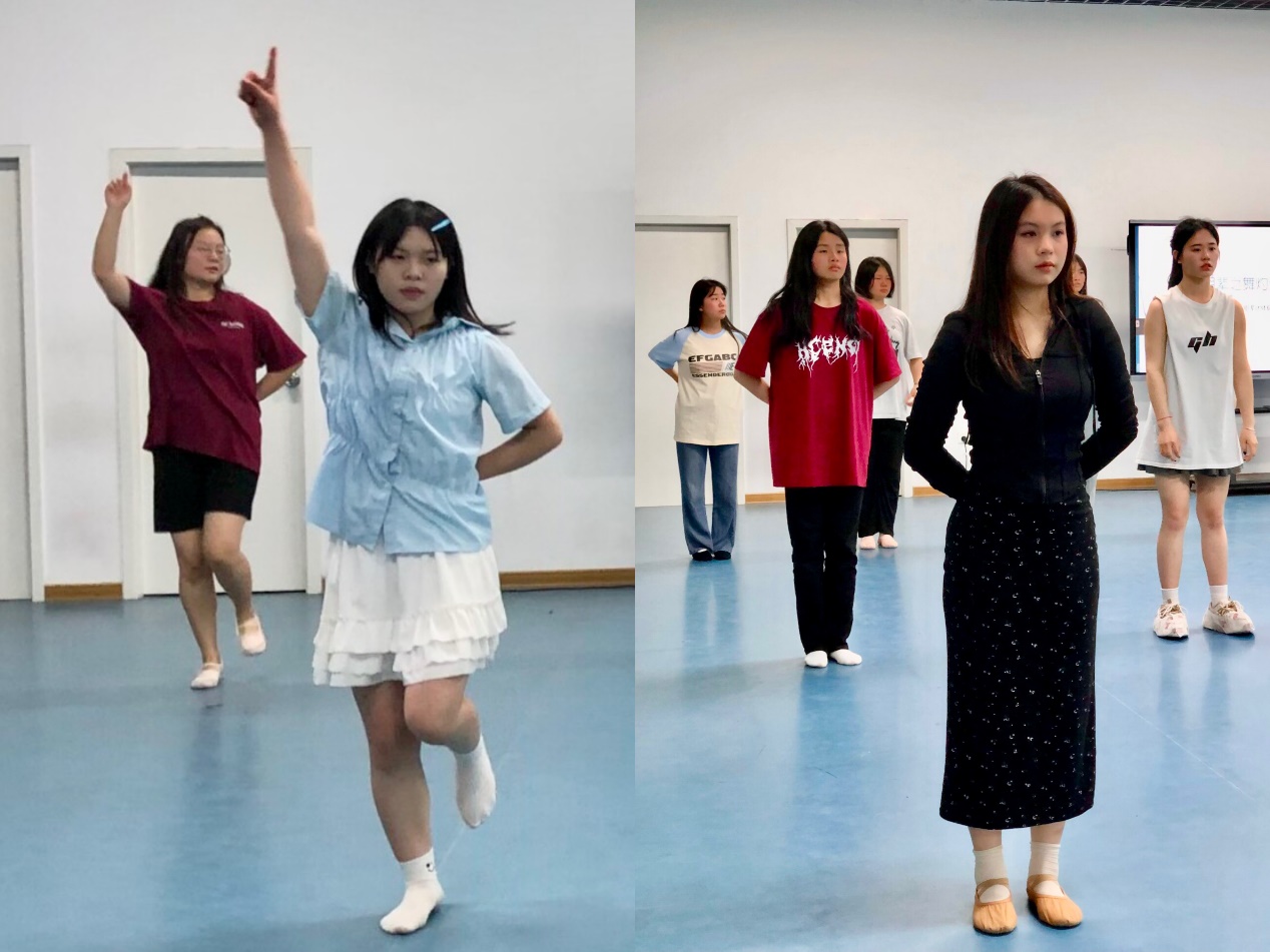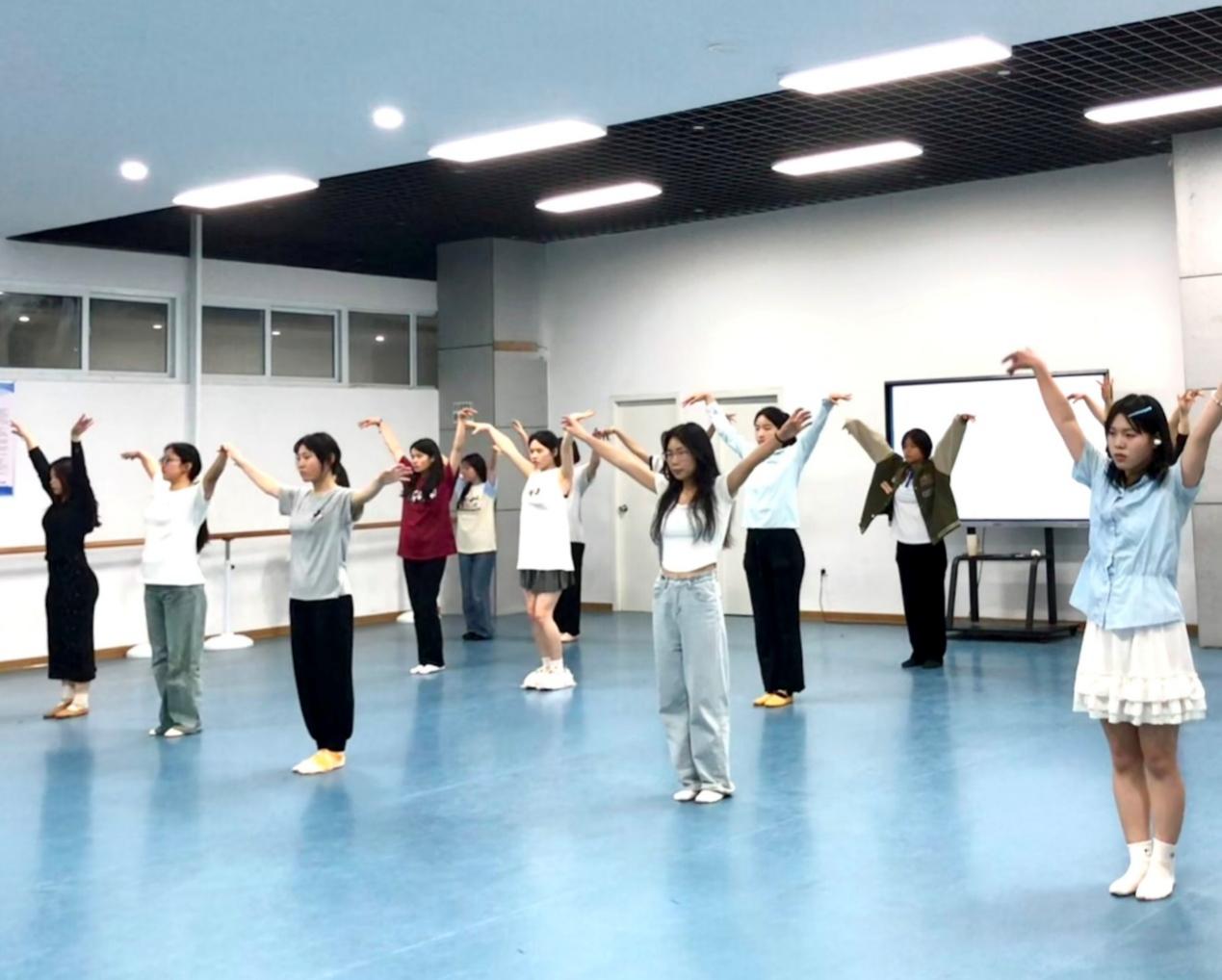 伴随着舒缓的音乐,领舞同学带领着同学们进行一系列热身拉伸运动后,便正式进入舞蹈训练中。在舞蹈房柔和的灯光下,同学们用心感受着音乐的每一个旋律跳动,节奏变化,将舞蹈动作完美的融入其中。踏步、跳跃,经过不断的练习,每位同学都能熟练掌握舞蹈的基本步伐和技巧,舞蹈动作之间衔接也更加协调、流畅,同学们都沉浸在舞蹈之中,脸上洋溢着自信的笑容。