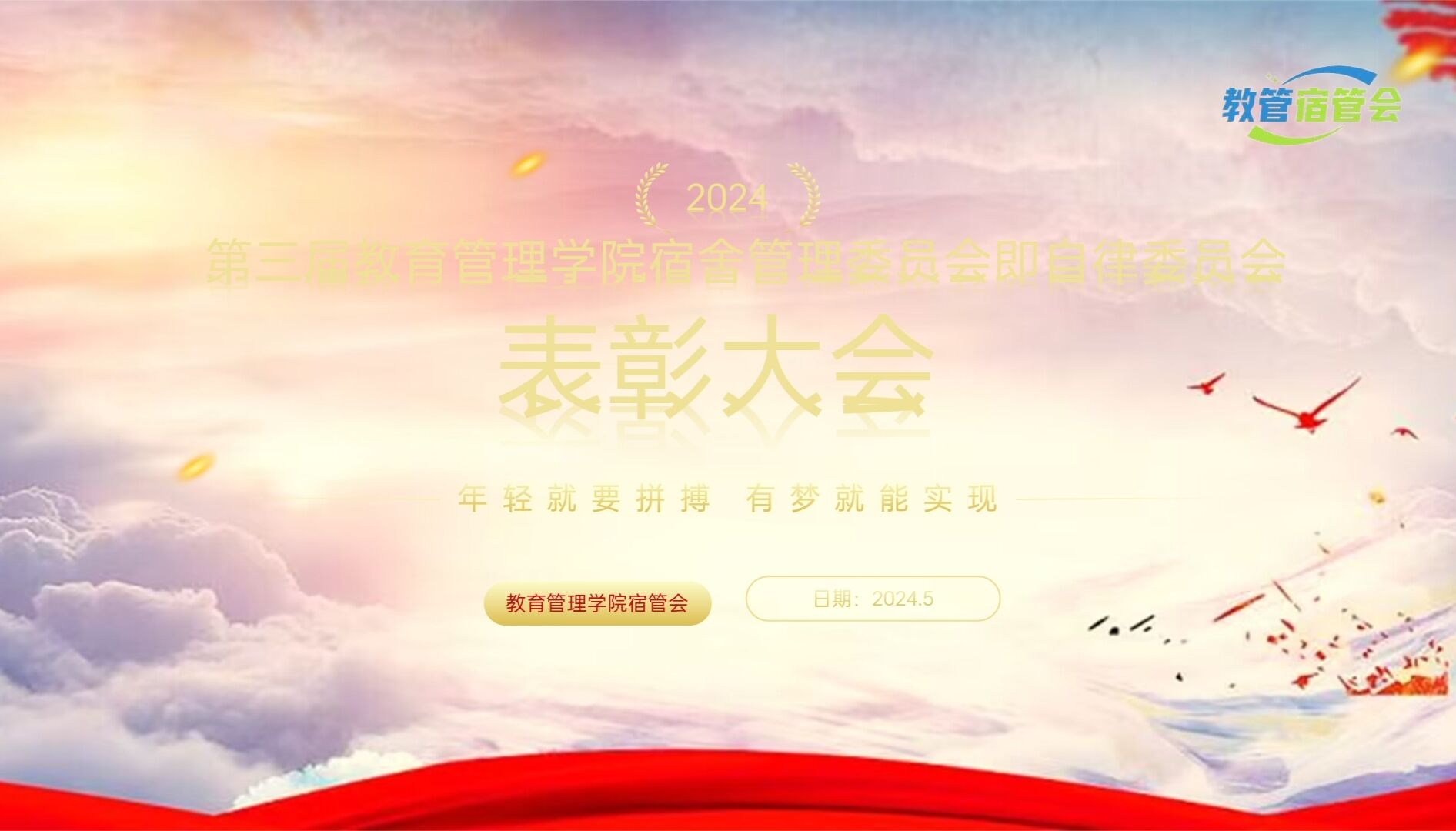 (供稿:孔万满 古芸兰 程小倩)为弘扬奉献精神与奋斗精神,推动宿舍管理工作更加规范化、制度化。5月18日下午4时,教育管理学院自律委员会于五号楼W206教室隆重举行了表彰大会。此次大会对自律委员会近期工作进行总结并对表现优异成员进行奖彰。