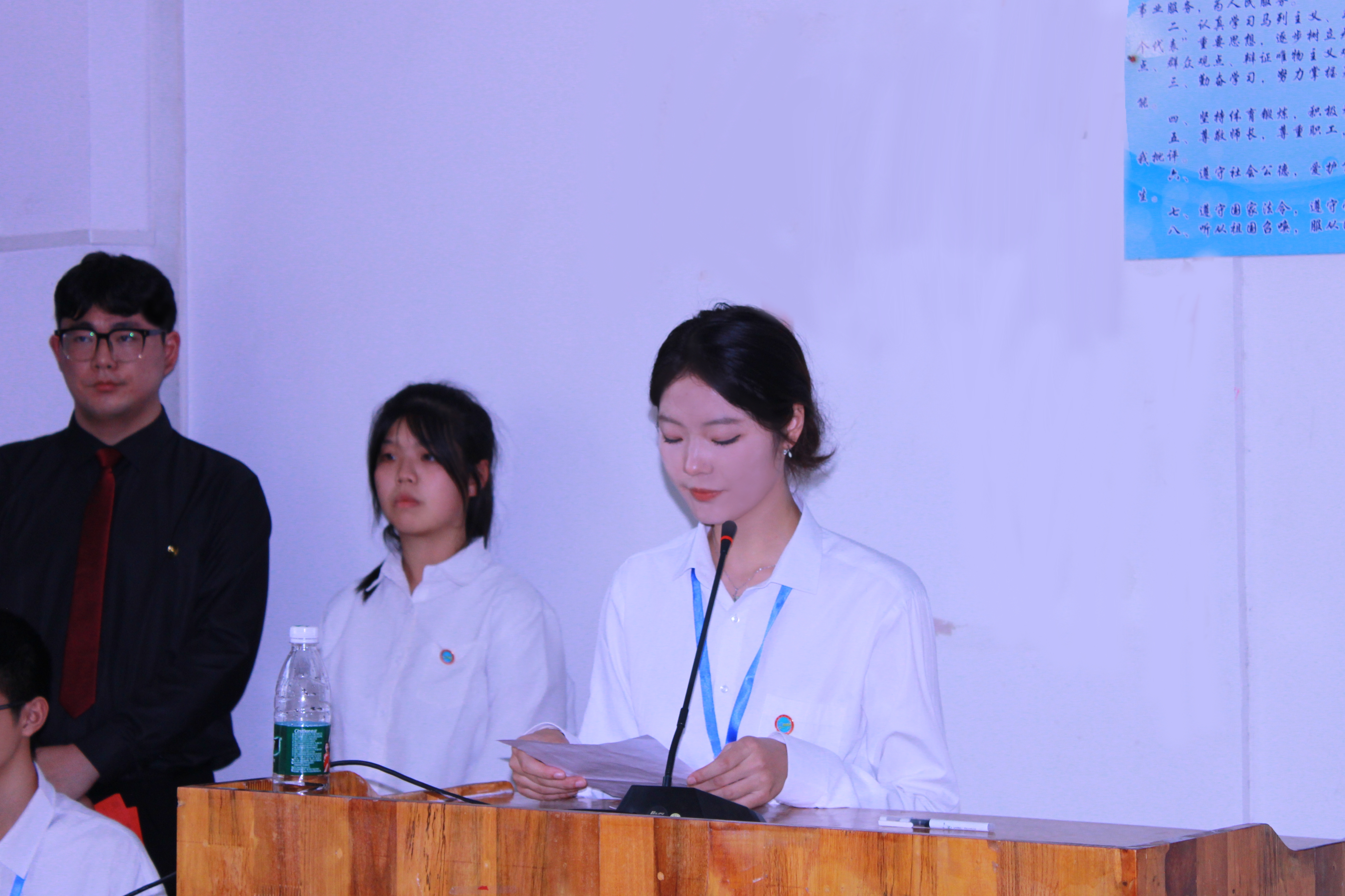 随后,优秀干事代表刘妍欢上台发言。她首先对自律委员会给予她的机会表示感谢,并对自己的成长历程进行了回顾和总结。她表示,过去的一年里,她收获了很多宝贵的经验,从最初的懵懂无知到现在的游刃有余,她学会了责任与担当,体会到了团队合作的重要性,也提高了自信心和人际交往能力。她承诺将以更加饱满的热情和更加努力的姿态继续为自律委员会工作贡献自己的力量。