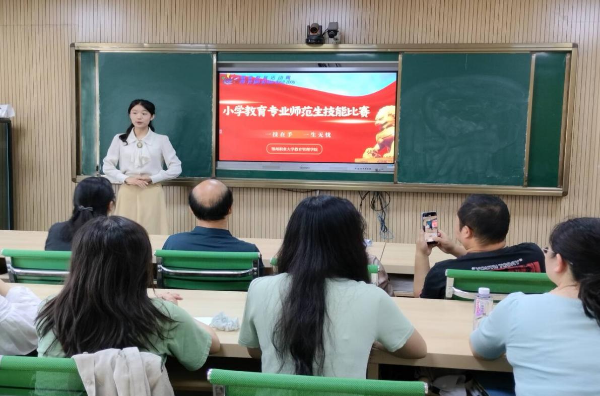 (供稿:严巧云 陈欣怡 曾心元)为深入贯彻党的二十大精神和习近平总书记关于职业教育的重要指示精神,进一步加强职业教育宣传,提高社会对职业教育的认知和认同,激发职业教育的活力,展现小学教育专业师生“厚德自胜,乐学道成”的精神风貌,培养高素质技能人才。教育管理学院小学教育专业师范生技能比赛于5月15日在二号楼S403如期举行。此次比赛分为朗诵与演讲、模拟授课、主题班会设计等项目。