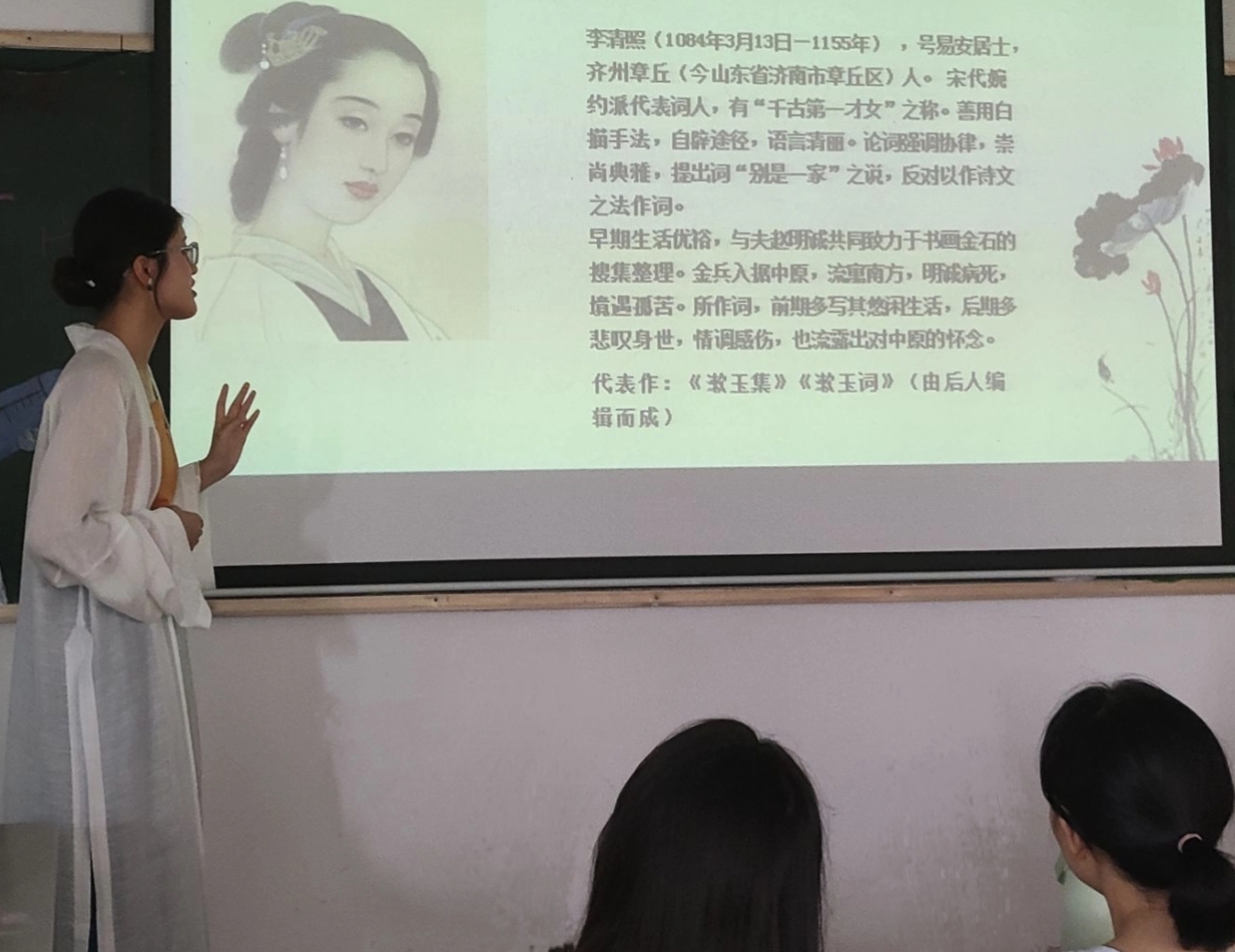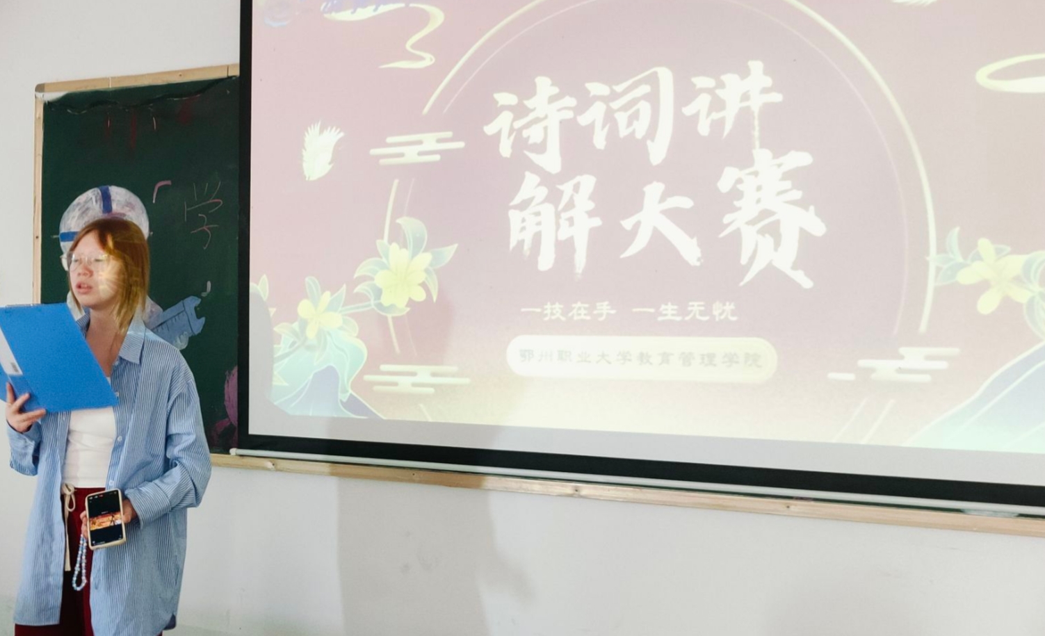 比赛现场,选手们满怀热情投入到诗词讲解之中,以丰富的文化底蕴,诠释了中国经典诗词的艺术魅力。选手用流畅的语言和清晰的逻辑讲解了李白的《行路难》,让现场观众更加深刻地领悟到这首诗的内涵;讲解王湾的《次北固山下》时,选手的讲解感情真挚,富有创意,将作品内容融入到自己的感悟中;杜甫的《望岳》、杜牧的《清明》、李白的《早发白帝城》……一张张精美的课件搭配着悠扬的音乐,呈现出一场精彩的视听盛宴,观众们纷纷陶醉其中。