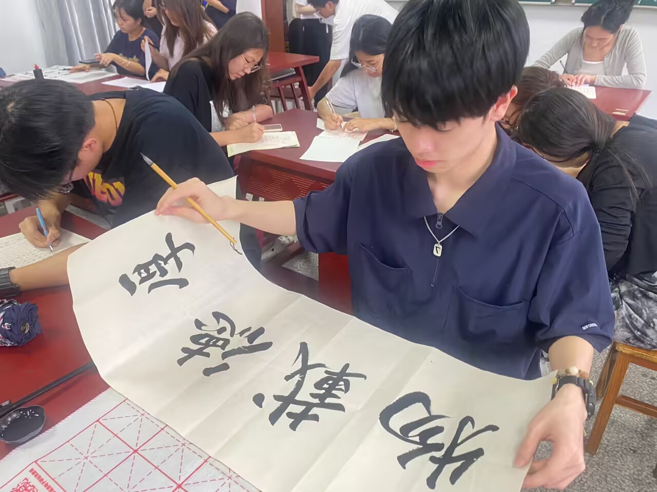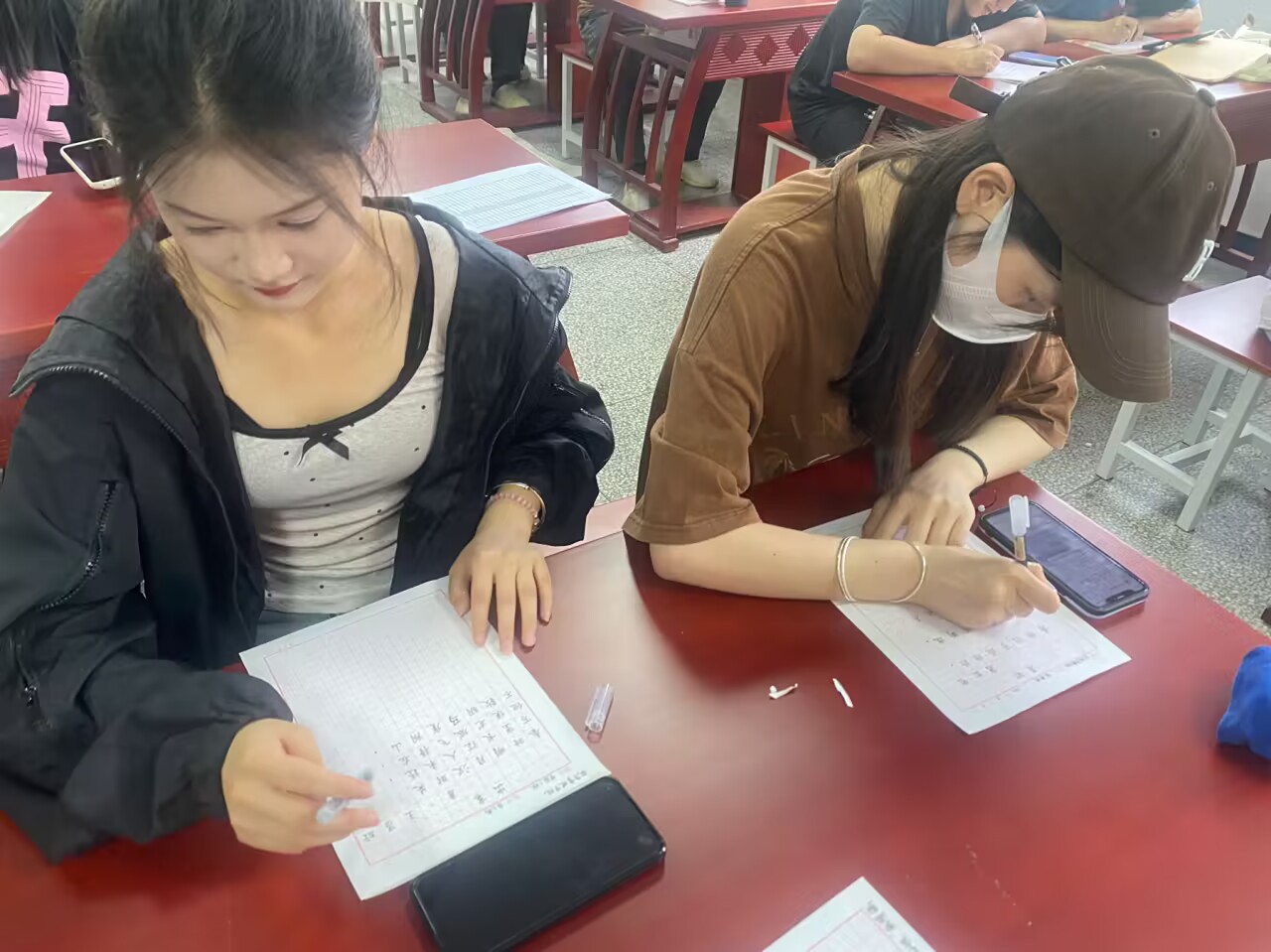 比赛开始,参赛选手们纷纷开始展示,起笔、落笔、收笔,将自己的情感与才华融入到每一个字之中,一支笔,书写千古文字,一张纸,传递百代芳华。在比赛过程中,同学们聚精会神,运笔沉稳,笔墨丝丝浸染着纸张,汉字之韵在此中流淌,一幅幅作品就此呈现,有的矫若惊龙,有的气贯长虹,有的行云流水……以优雅的线条与独特的韵味,彰显出同学们深厚的书法功底,也体现了书法文化的独特魅力。