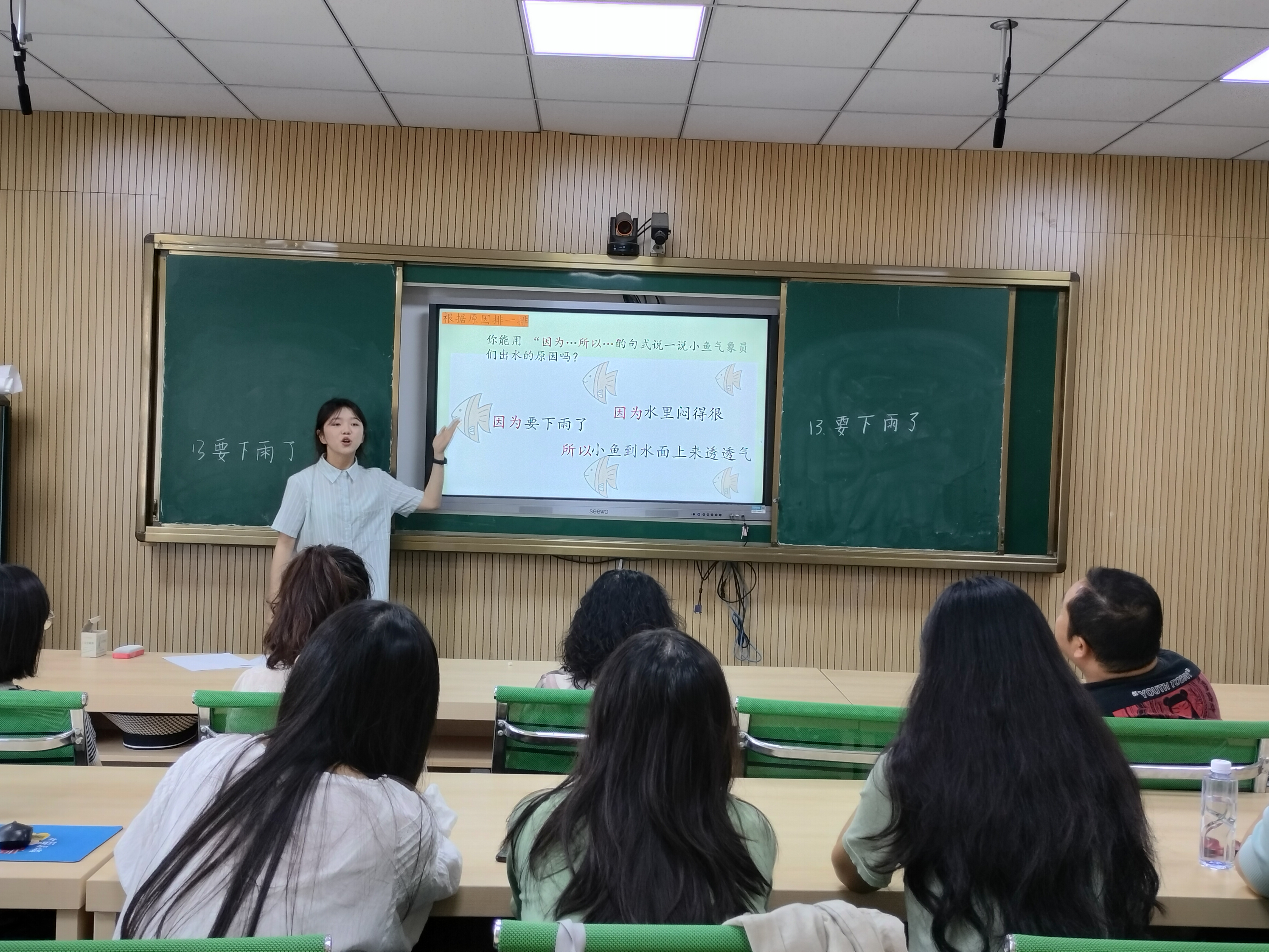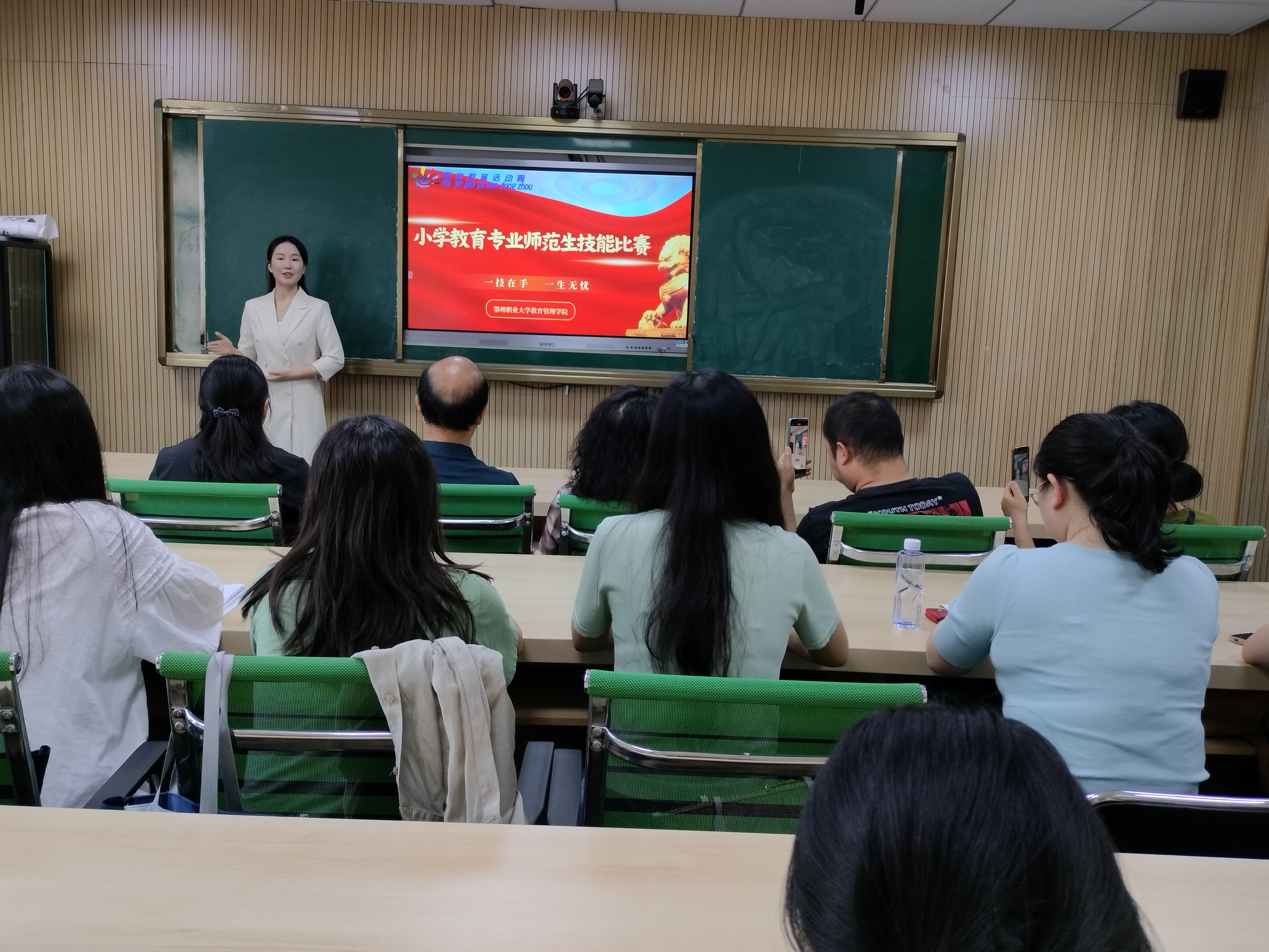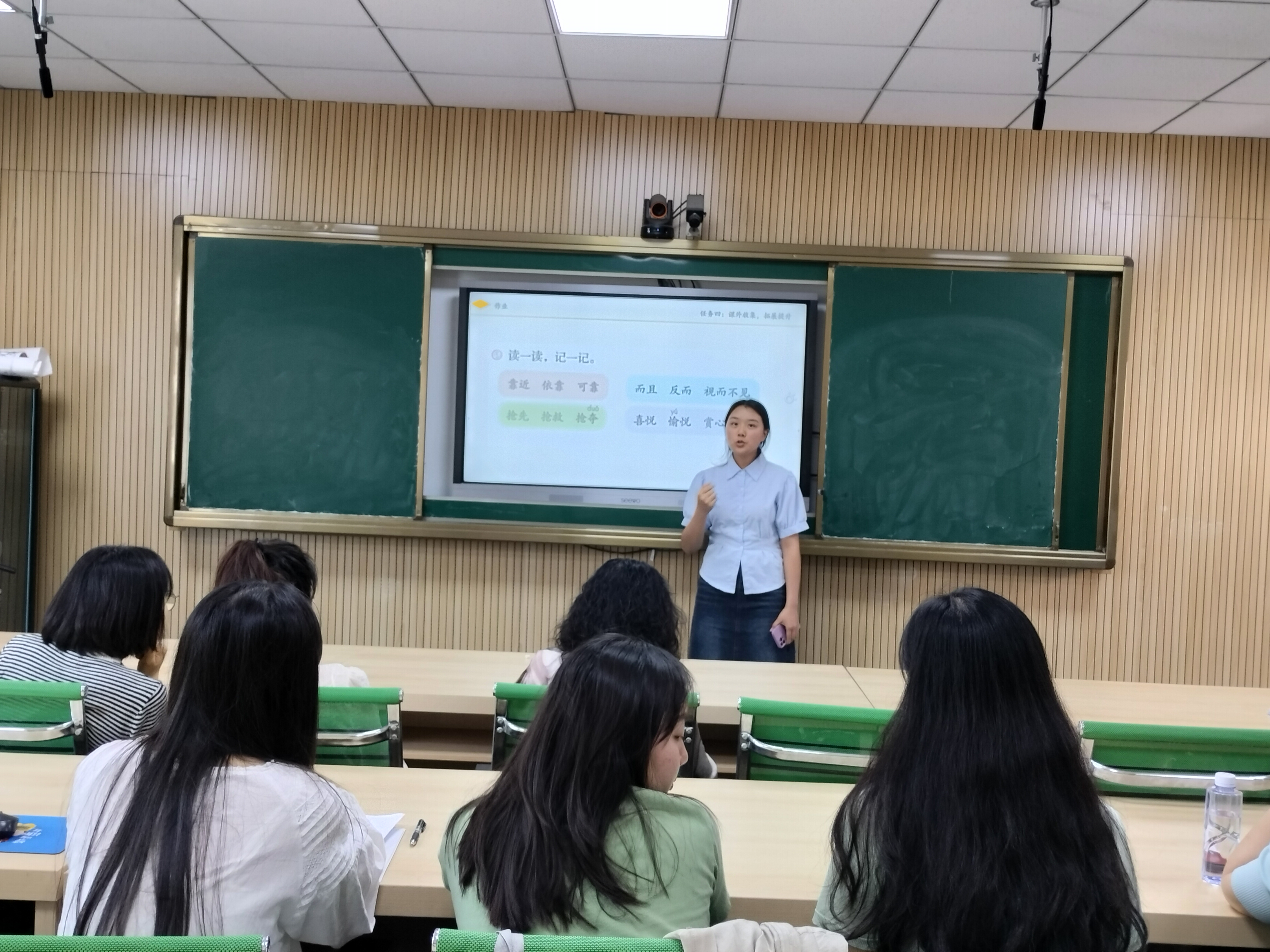 小学教育专业的选手们首先进行了小学课文《观潮》、《麻雀》的朗读展示,她们的音色优美,感情丰富,富有感染力和表现力,而后进行三分钟即兴演讲,她们以饱满优美的文辞和出众的口才赢得了全场老师评委以及同学们的热烈鼓掌。在模拟授课过程中,同学们理论与实践相结合,通过有趣的导入方式和多样的教学方法以及清晰的思路,充分展现了小学教师所具备的职业素养和小学教育专业学生的教学实践能力。课件制作展示中,选手们制作的课件,板块多样,内容丰富,能结合小学生的年龄特点、生活实际以及人文素养,引导小学生深入理解课文内容。最后是展示说课环节,他们在充分了解小学生心理特点的基础上,从活动目标、活动准备、活动过程等方面进行阐述,思路清晰,逻辑严密,显示出一定的底蕴。