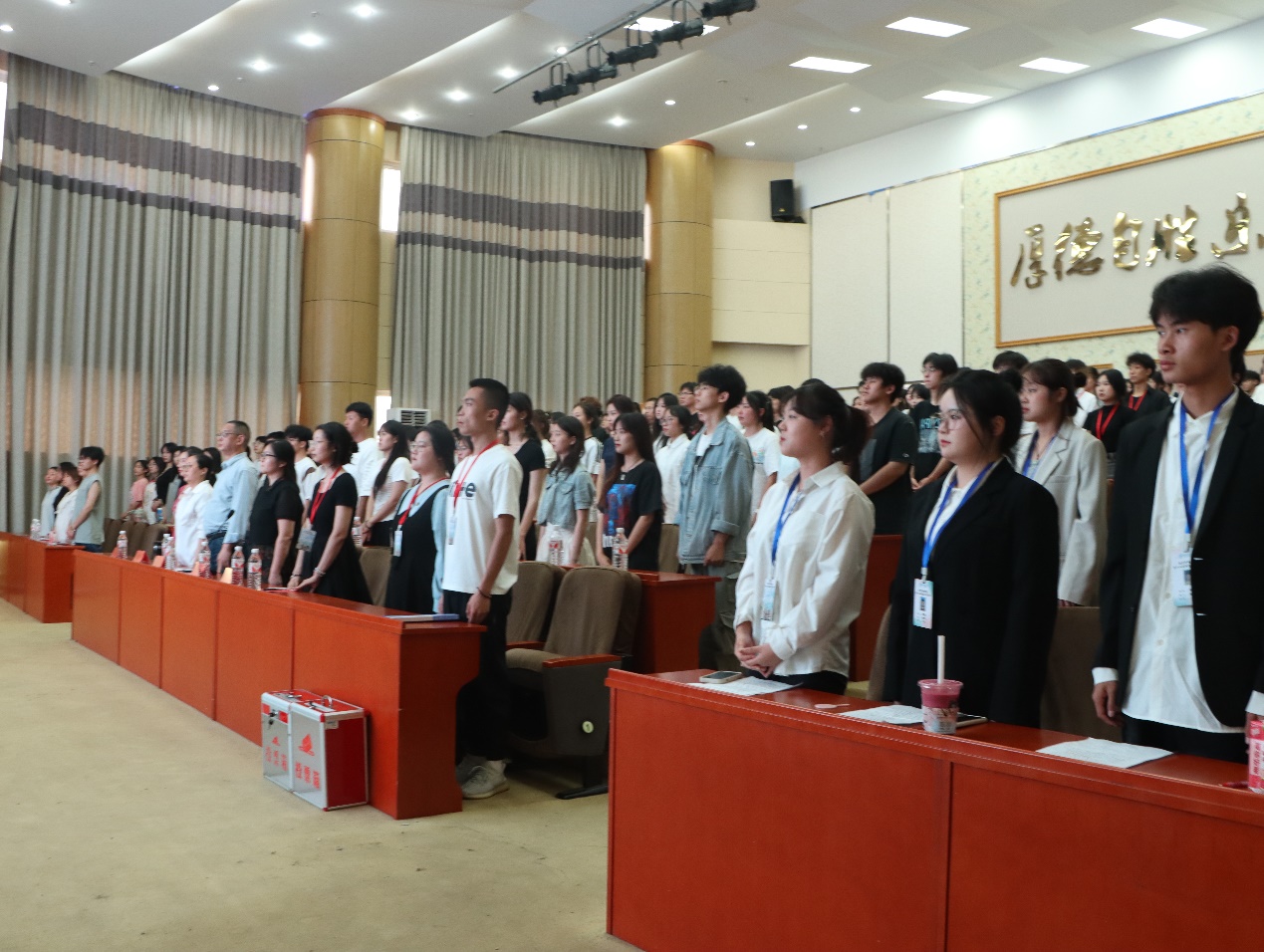 为进一步加强学生会的组织管理,培养新一批学生会骨干,提高学生自我管理水平,6月6日晚,教育管理学院团总支学生会于5号楼学术报告厅举行第18届学生干部换届大会。党总支书记瞿信柏,副院长黄丽,党总支副书记吕婷,团总支书记何青以及各校级组织,各学院代表,学生会第18届干部,23级各班代表出席本次大会。会议由“青言青声”宣讲团成员俞婷婷主持。