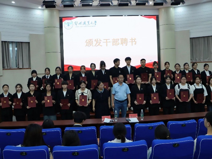 在热烈的掌声中,教育管理学院党总支书记瞿信柏和教育管理学院党总支副书记吕婷,为22级楼栋长及干事颁发了聘书。他们的辛勤工作不仅为现今的宿管会工作奠定了坚实基础,也为新一届干事们树立了学习榜样。