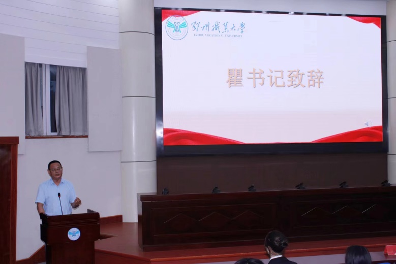 大会的最后,瞿信柏书记上台致辞。他向新任干部们致以热烈的祝贺,并期待新任干部们在未来的工作中能够持续发挥巨大作用,为组织和团队的发展贡献更多的智慧和力量。他强调寝室建设是一个长期而艰巨的任务,需要宿管会整个团队以及全师生的共同努力和持续付出。