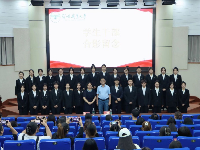 在热烈的掌声中,领导和老师们再次登台,与新一届干部们共同合影留念。