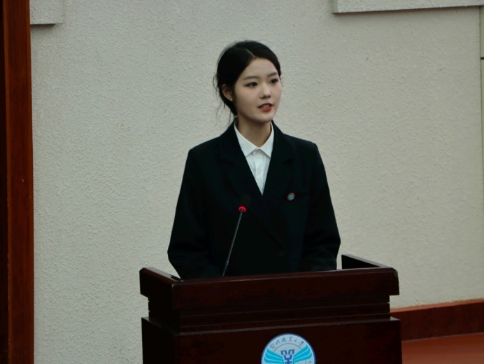 新任干部代表陆殷上台发言,她表示将会积极组织各类活动,促进同学们的互动与交流,增进同学们之间的友谊积极协调各方资源,努力为大家解决各种实际问题。