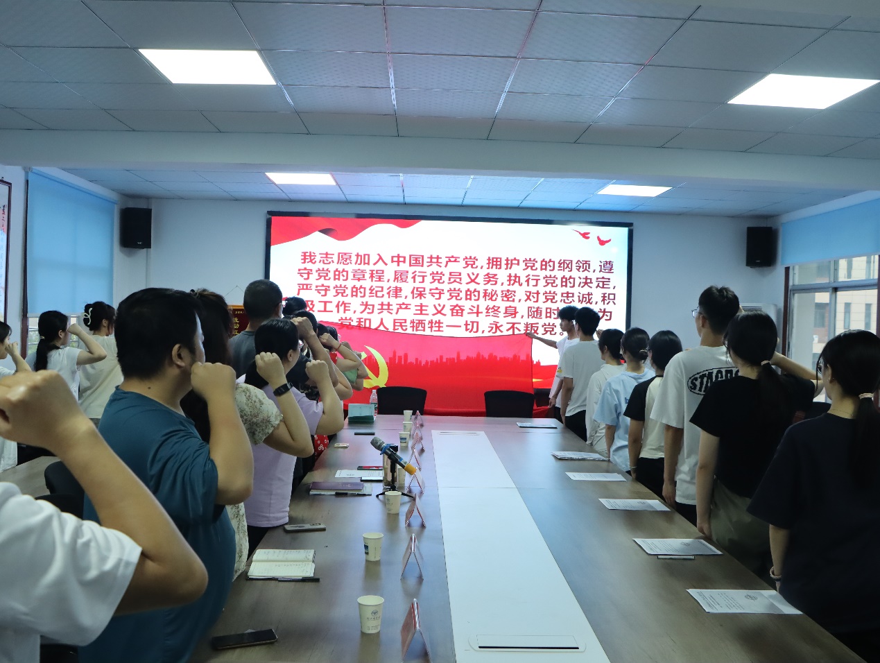 在庄严肃穆的氛围中,全体预备党员整齐列队,面容严肃而坚定。随着吕婷同志的引导,预备党员们郑重地举起右拳,庄严宣誓:“我志愿加入中国共产党,拥护党的纲领,遵守党的章程……”一声声坚定有力的誓言在会场回荡,这是他们对党的郑重承诺,也是他们踏上新征程的起点。