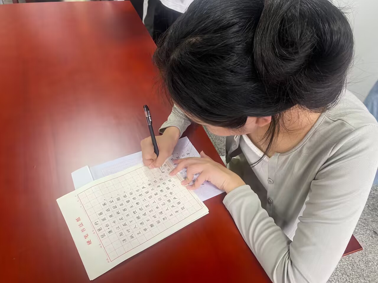 在汉字书写展示活动中,同学们挥毫泼墨,一笔一划间不仅展现了他们对书法艺术的热爱,更体现了对传统文化的传承与尊重。他们的作品或遒劲有力,或温婉细腻,每一幅都凝聚着对祖国的深情厚谊。