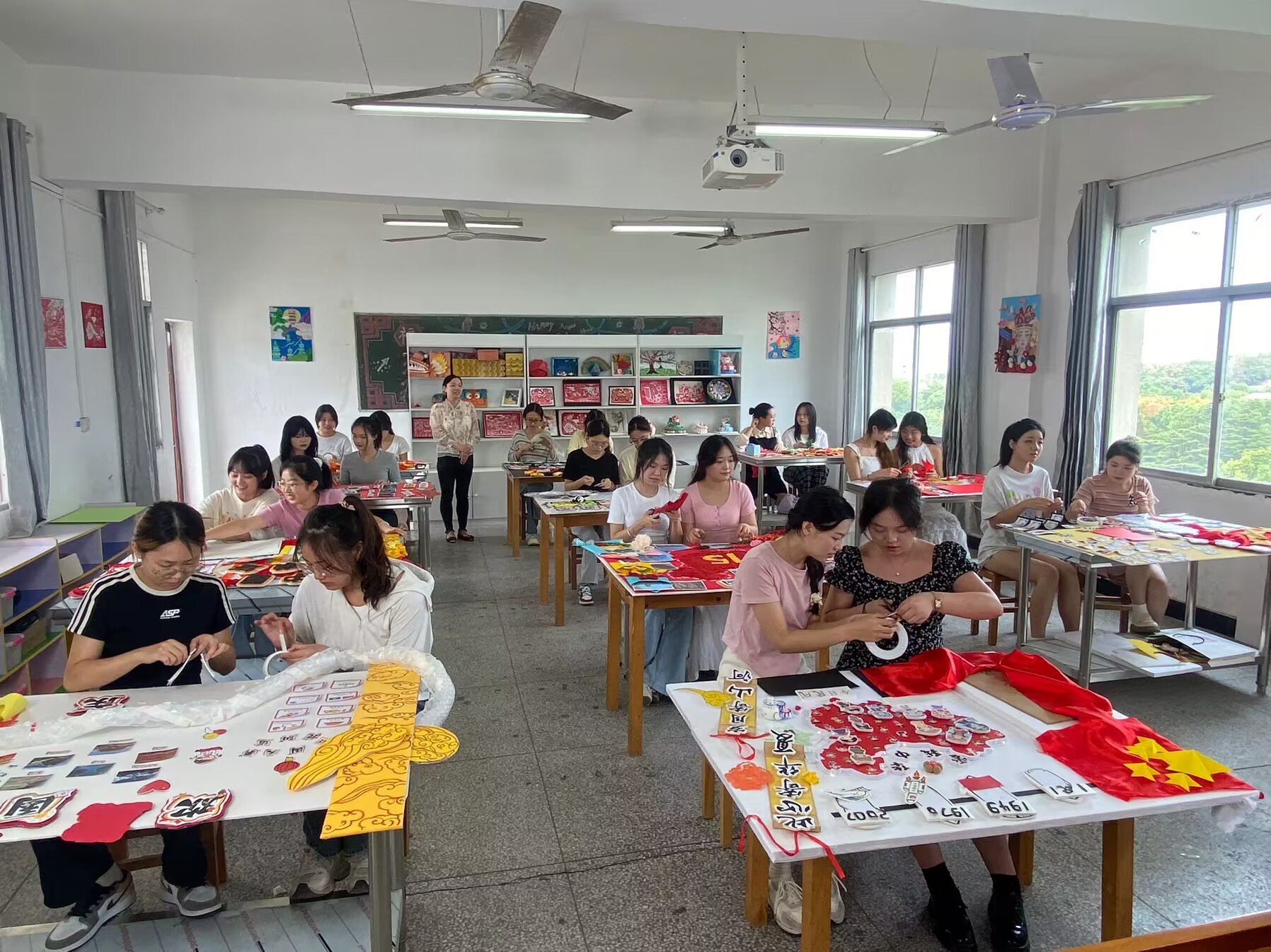在学前环创实训室,学生们围绕“庆国庆”主题,创意无限,设计了一系列既烘托节日氛围又适宜幼儿园的环境布置。他们运用色彩、材料,综合布局,打造出既符合幼儿审美又具教育意义的国庆环创。利用环保材料制作国旗、花朵等装饰,既增添了节日气氛,又培养学生们的环保意识。这些作品不仅展示了学生们的专业技能和创新思维,也让学生们更加深刻理解了“活教育”思想的精髓。