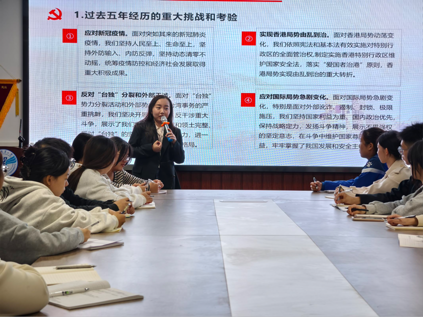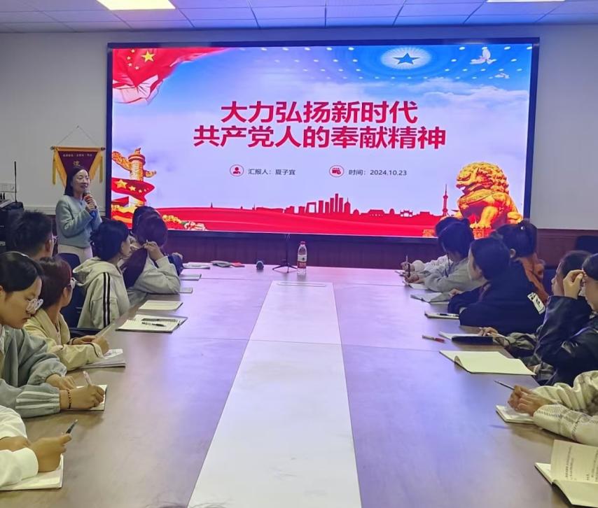 第三讲由学生二支部宣传委员夏子宜主讲,她以《大力弘扬中国共产党奉献精神》为题,深刻探讨了在新的历史条件下,共产党人应如何继承和发扬奉献精神,为国家和社会的发展做出更大贡献。夏老师结合国内外形势的变化,分析了当前所面临的一系列复杂问题,如经济发展不平衡、社会矛盾加剧等。她认为,在这样的背景下,弘扬奉献精神不仅是对个人品质的要求,更是解决社会问题、促进国家繁荣稳定的关键所在。她鼓励学员们要勇于奉献,敢于担当,成为新时代的先锋力量。
