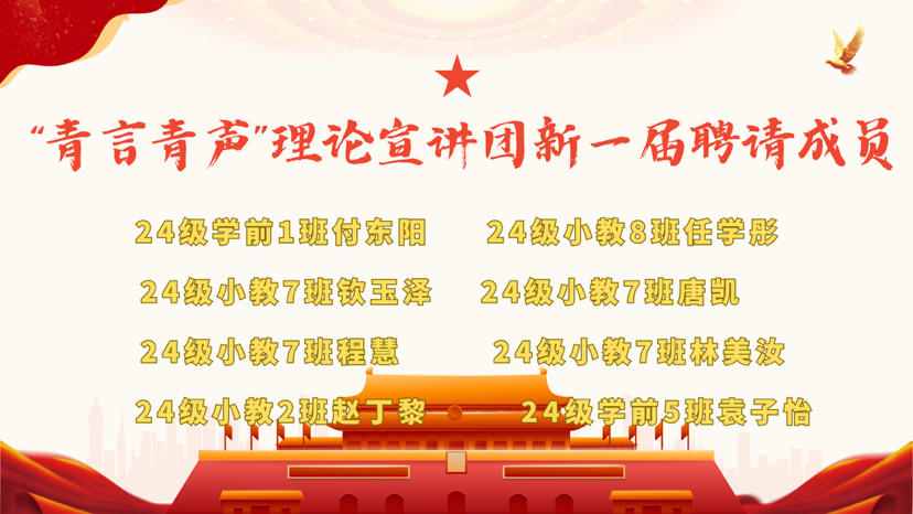 (供稿人:何青 俞婷婷)为深入学习宣传贯彻党的二十届三中全会精神,积极响应党中央关于加强青年思想政治工作的号召,传承红色基因,弘扬时代主旋律,展现新时代青年的责任与担当。117日晚,我院“青言青声”学生理论宣讲团在二号楼301会议室成功举办了以“逐梦新时代,青春绽芳华”为主题的演讲比赛。此次活动旨在通过理论宣讲的形式,促进二十届三中全会精神在大学生中的广泛传播与深刻理解。来自教育管理学院团总支书记何青及“青言青声”理论宣讲团的五位核心成员担任评委,广大学生积极参与,比赛由王瑶同学主持。