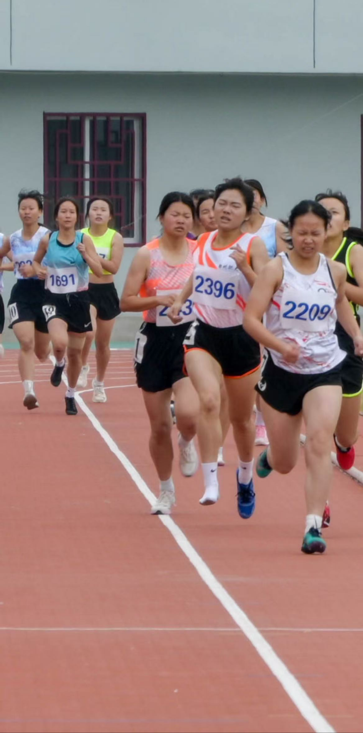 进入后半程,有些选手开始体力不支,速度逐渐慢了下来。而这时,冯欢怡冲出了人群,她的速度提升了不少,喘息声似乎也更重了。她额前的两缕头发被汗水粘在了脸上,眼睛也眯了起来,脚步比先前沉了不少,但她摇了两下头,摇去了粘在脸上的头发,眼神依旧坚毅。