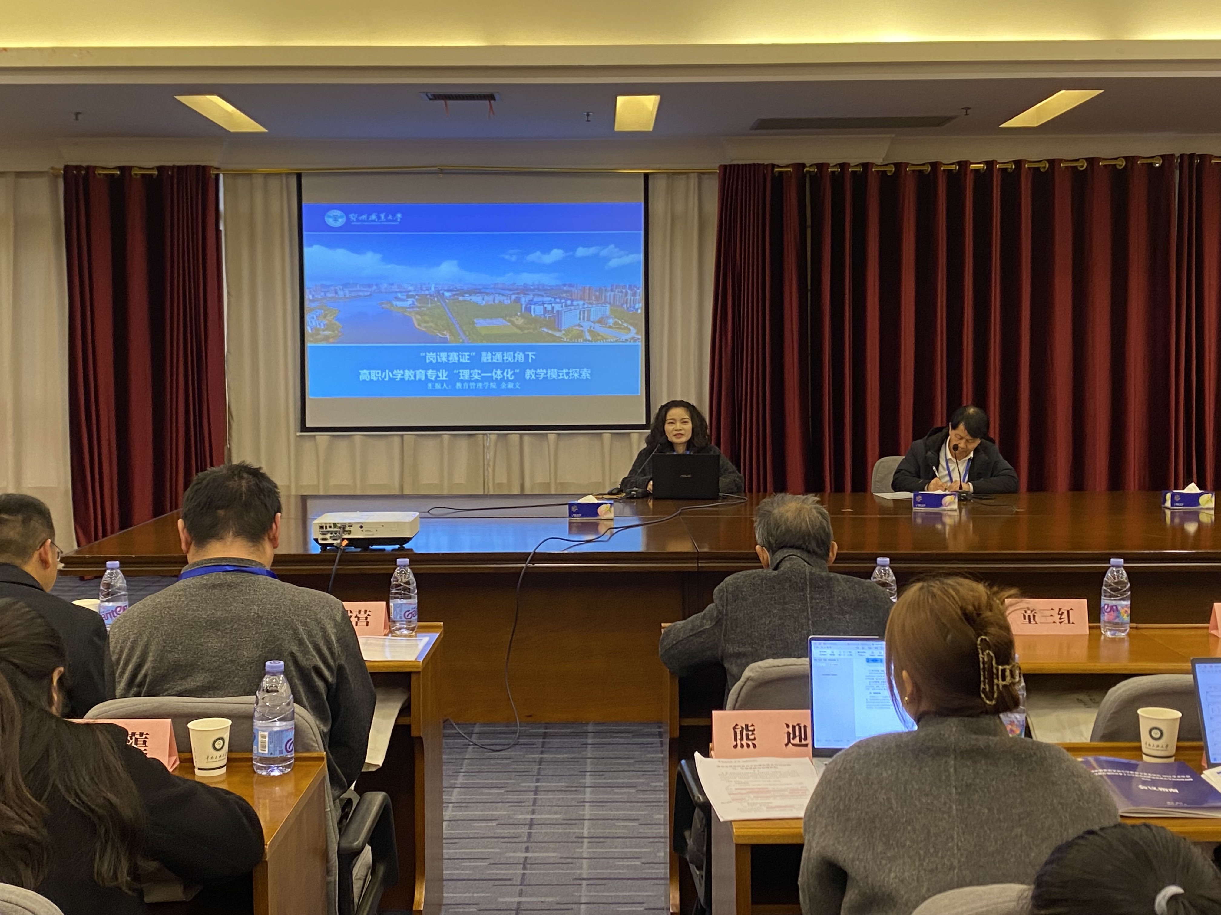 在“师范生培养”论坛上,我院青年骨干教师余淑文作了题为《“岗课赛证”融通视角下高职小学教育专业“理实一体化”教学模式探索》的主题报告,围绕着“理实一体化”教学模式的提出背景、小学教育专业“理实一体化”教学建设情况及教学成果等方面分享了实践经验。