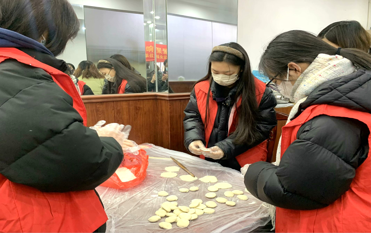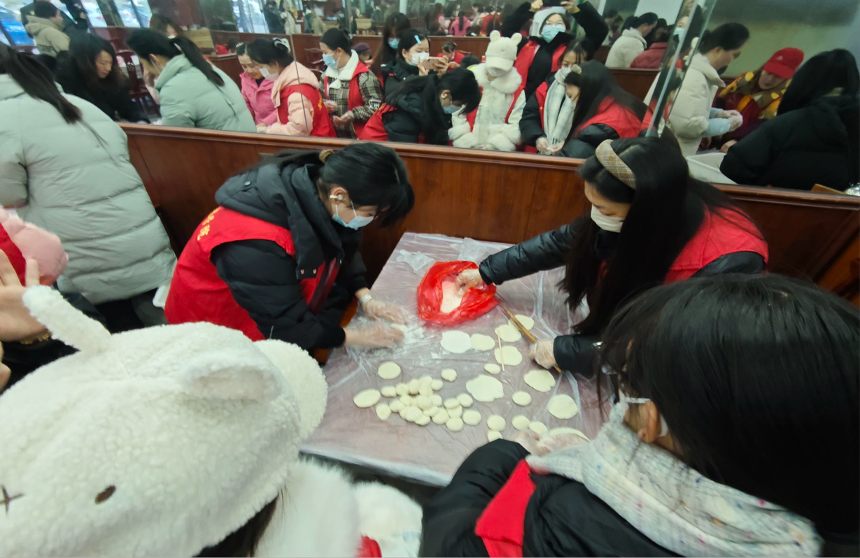 1220上午八时,寒风凛冽,鄂州职业大学教育管理学院的大学生志愿者们带着满腔热忱与活力,来到了镜园社区的鑫瑞饺子馆。志愿者们迅速分成几个小组,有条不紊地参与到揉面粉、扯面团、擀面皮、包饺子等各项准备工作中。与此同时,另一组志愿者负责布置场地,确保一切就绪,迎接社区居民的到来。整个过程中,志愿者们的热情如同冬日暖阳,让每一位参与者都感受到了家一般的温暖。