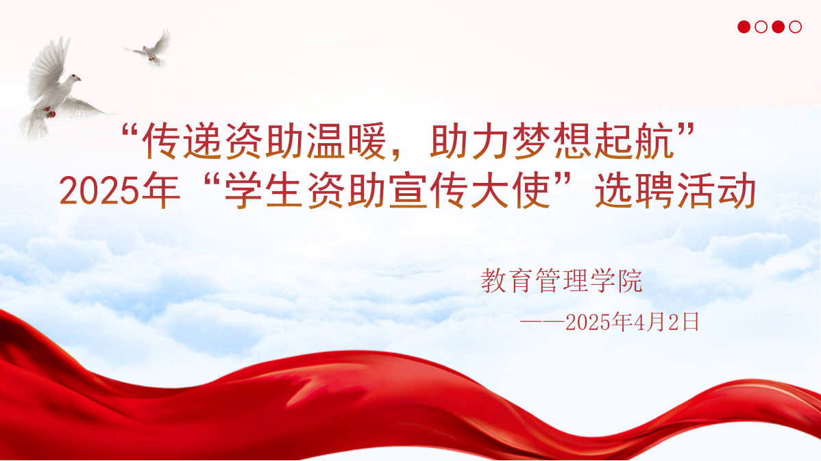 (通讯员:高雪瑞 汪冰沁)在希望的田野上,教育是那茁壮成长的幼苗,而学生资助政策则是滋养它的甘霖。为让这甘霖润泽每一寸土地,近日,一场意义非凡的学生资助宣传大使选聘活动于2025年4月2日19:00在二号楼315会议室盛大开启,此活动如同一束明亮的光,照亮学子逐梦之路。
