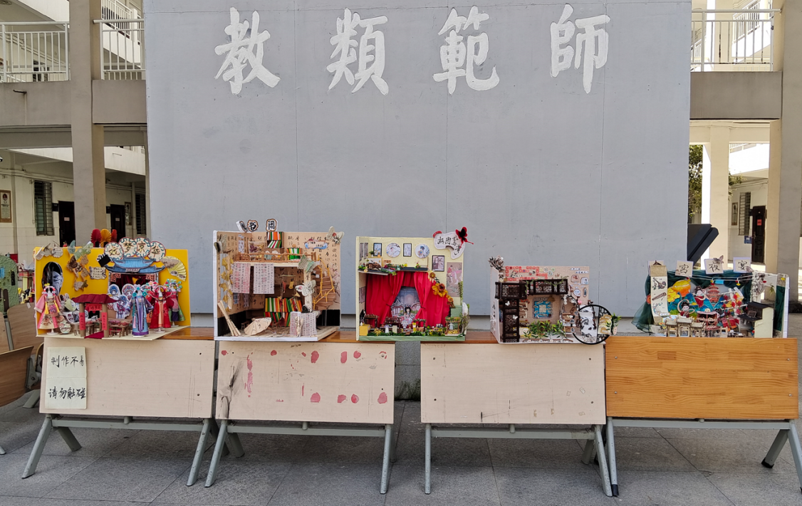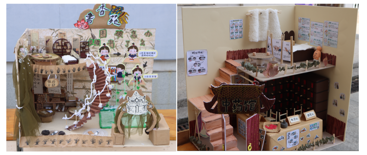本次展览以学前教育专业《幼儿园环境创设》课程为实践载体,将中华优秀传统文化与思想政治教育深度融合,通过京剧、漆扇、戏曲、书法、中医、歌舞剧唐宫夜宴等经典元素的创新演绎,打造出一个兼具艺术美感与思想深度的沉浸式文化体验空间,吸引了教师及学生们的热切关注。
