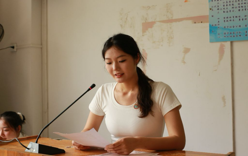 优秀干事代表杨星宇随后登台发言,分享了在工作中的收获与感悟。从初入组织时的青涩懵懂,到如今能够独当一面的成熟稳重;从面对琐碎事务时的耐心细致,到处理突发事件时的冷静果断,她用真挚的讲述勾勒出在宿舍管理委员会的成长轨迹,引发了在场师生的强烈共鸣。她表示,在宿舍管理委员会的工作经历是一笔宝贵的财富,不仅锻炼了自己的能力,更让自己懂得了责任与担当的意义。